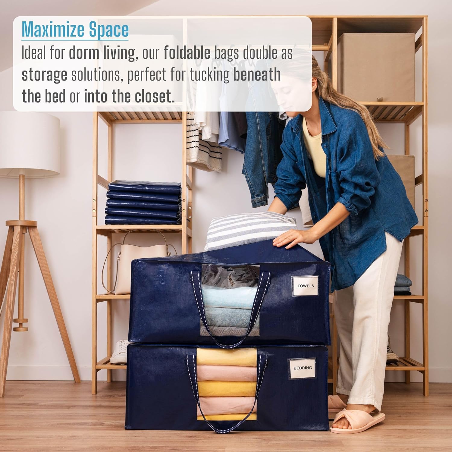 VENO 10 Pack Moving Bags Extra Large Storage Bags for College Move-In, Heavy-Duty Storage Totes, Packing Boxes, and Wardrobe Moving Supplies - Durable Laundry Bags for Clothes (Blue w/Window, 10 Pack)