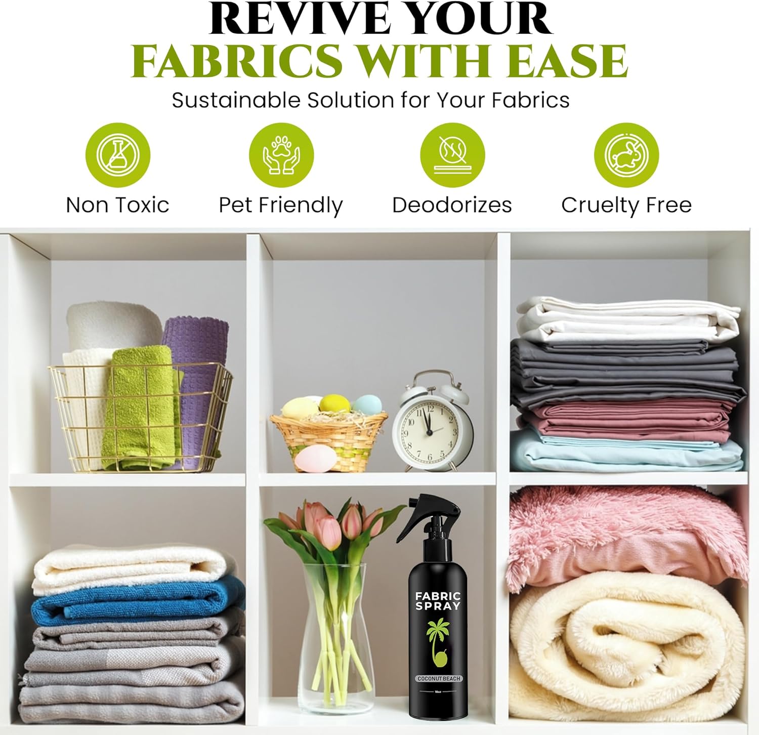 - MADE WITH ESSENTIAL OILS: Our Fabric Refresher Spray is more than just any other Frabric Spray for linens. It is a unique blend of essential oils that help you relax and clear your head.