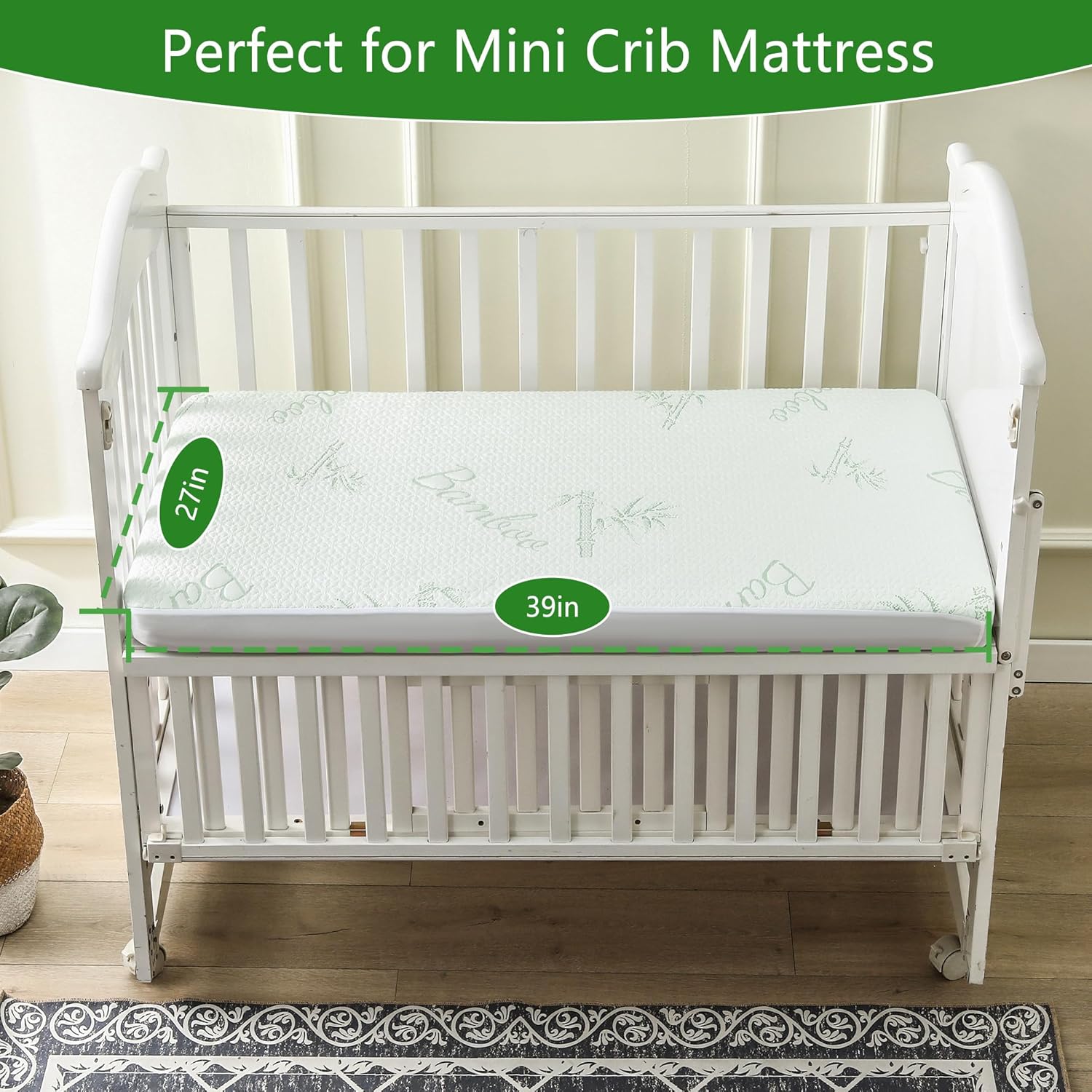 - Perfectly Fitted with 360° Deep Pocket: Experience a secure and customized fit with this mini crib waterproof mattress protector, thanks to its all-around high-rebound elastic skirt. Like a glove, it wraps your mattress snugly, while its waterproof capabilities ensure optimal protection. Designed to fit most mini crib mattresses measuring 39"x27" with depths up to 13", this baby crib mattress protector provides a secure and comfortable sleep environment for your little one.