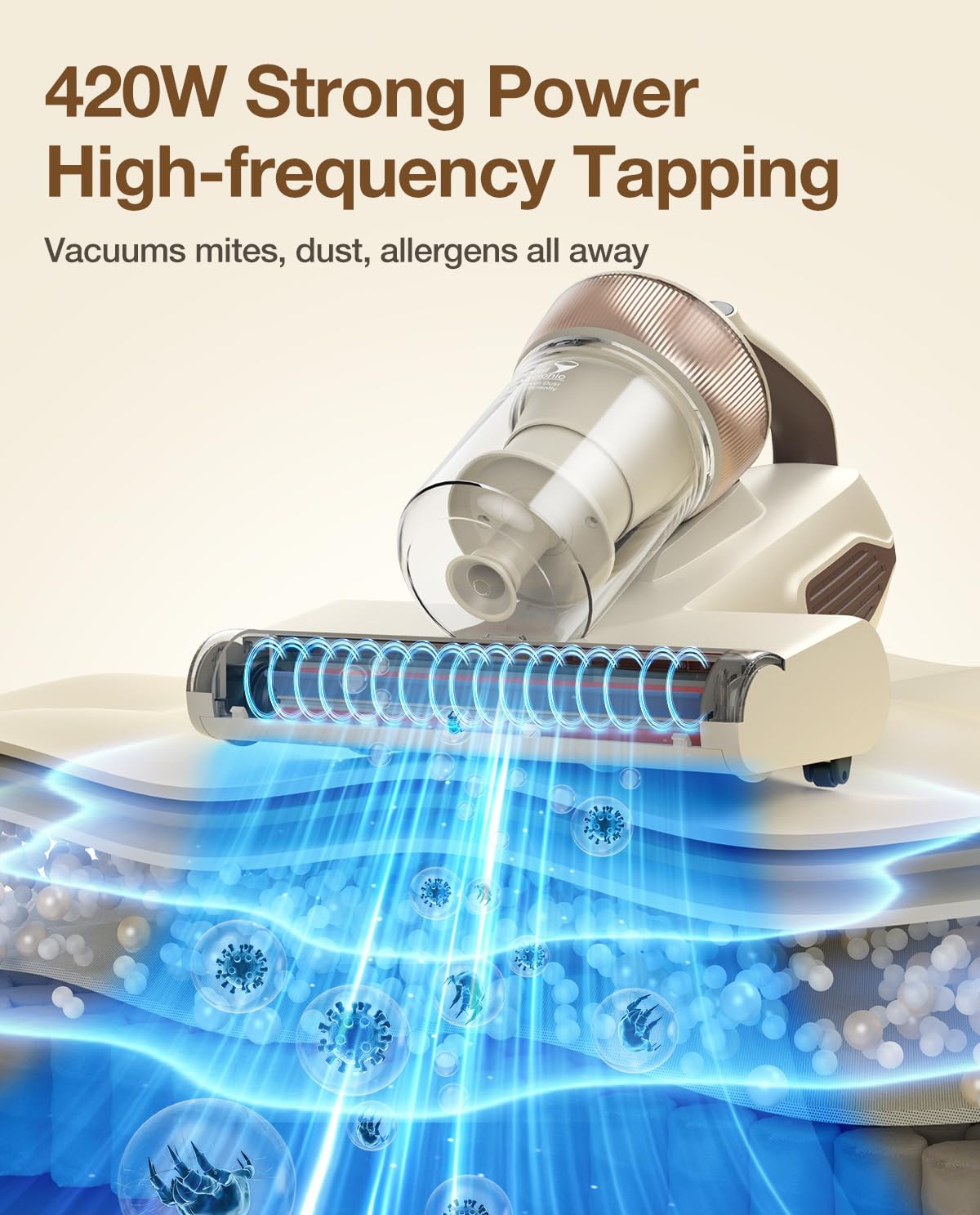 - 99.99% dust removal: Our advanced 3-in-1technology combines UV sanitizing, ultrasonic waves, and high heating, ensuring that our mattress vacuum eliminates 99% of dust. Protect your family from skin troubles and enjoy a comfortable night's sleep.