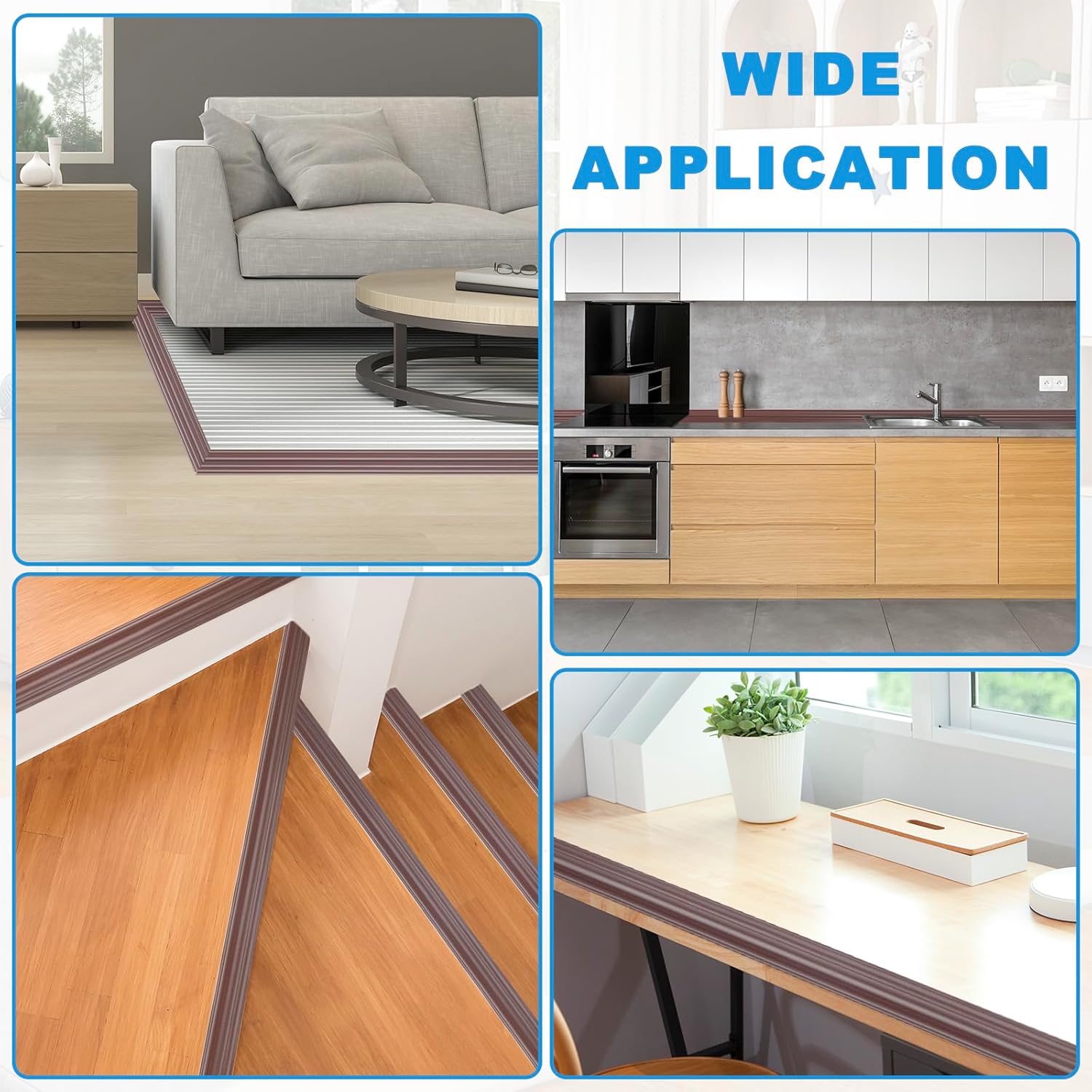 - Wide Application: The corner molding is highly versatile and can be applied to a wide range of surfaces, including tile, plastic, marble, metal, glass, wood, and smooth walls. It is suitable for various spaces such as bathrooms, bedrooms, living rooms, kitchens, offices, and toilets. Additionally the corner trim can be used on stairs baseboards ceilings frames and cabinets to enhance aesthetics and safety.