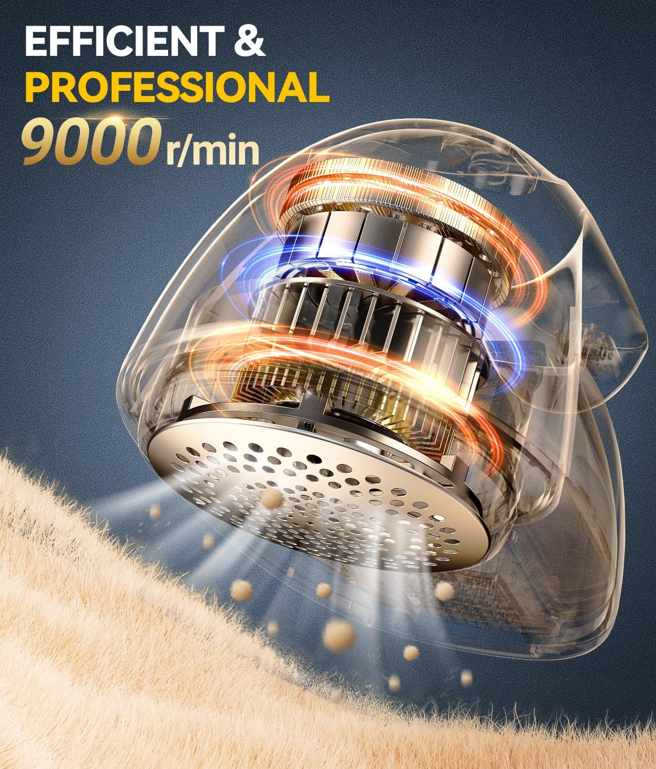 - Powerful & Efficient Performance: This fabric shaver for clothing boasts a 9000 RPM motor and 6 leaf blades, delivering fast and effective lint, fuzz, and pilling removal to keep your clothes and furniture in pristine condition.