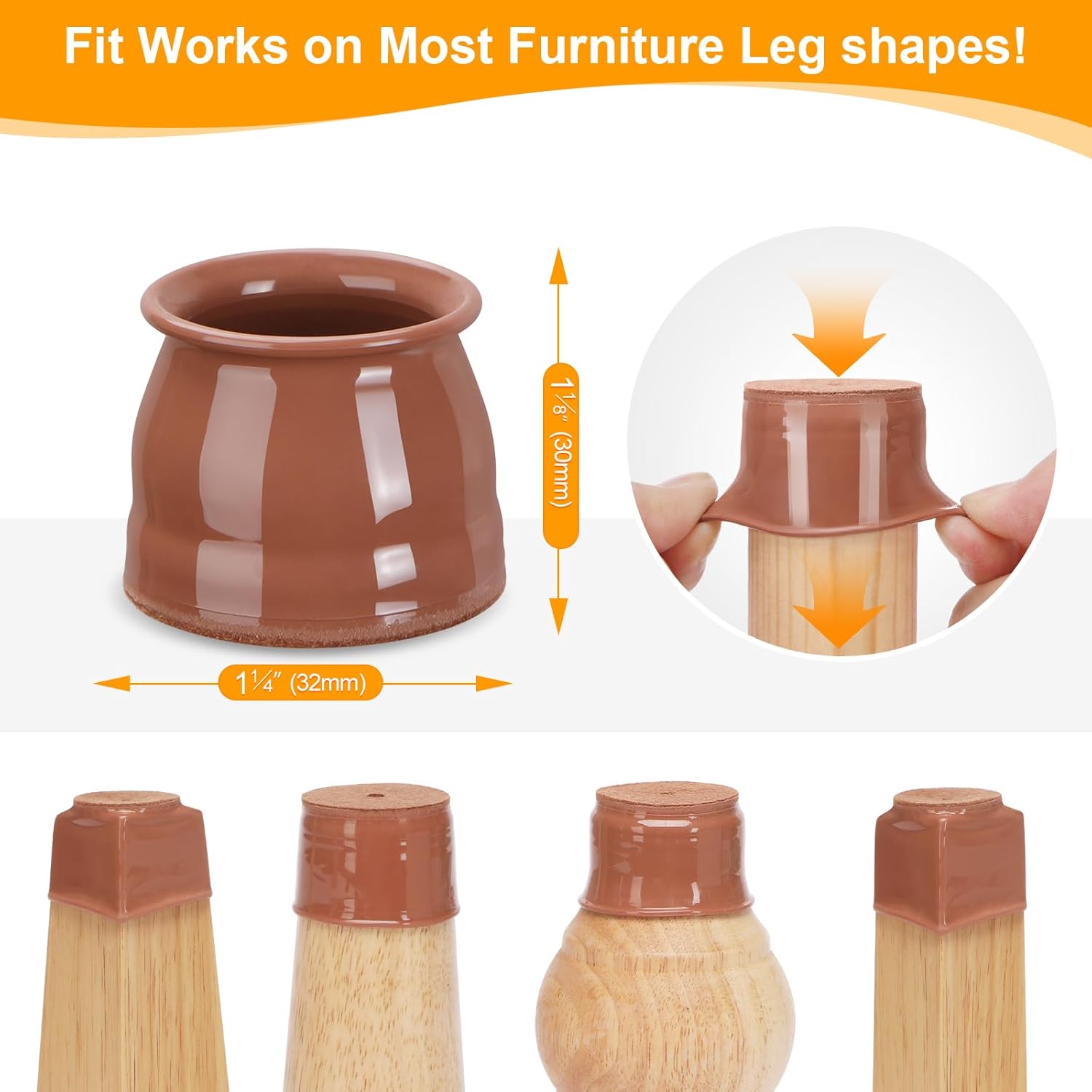- Common Sizes: Perfectly fits chair legs with a circumference ranging from 3 3/16" to 4 9/16" (80-115mm). Round diameter 15/16" to 1 5/16" (23-32mm). Square side length 12/16”to 1 3/16" (20-28mm).