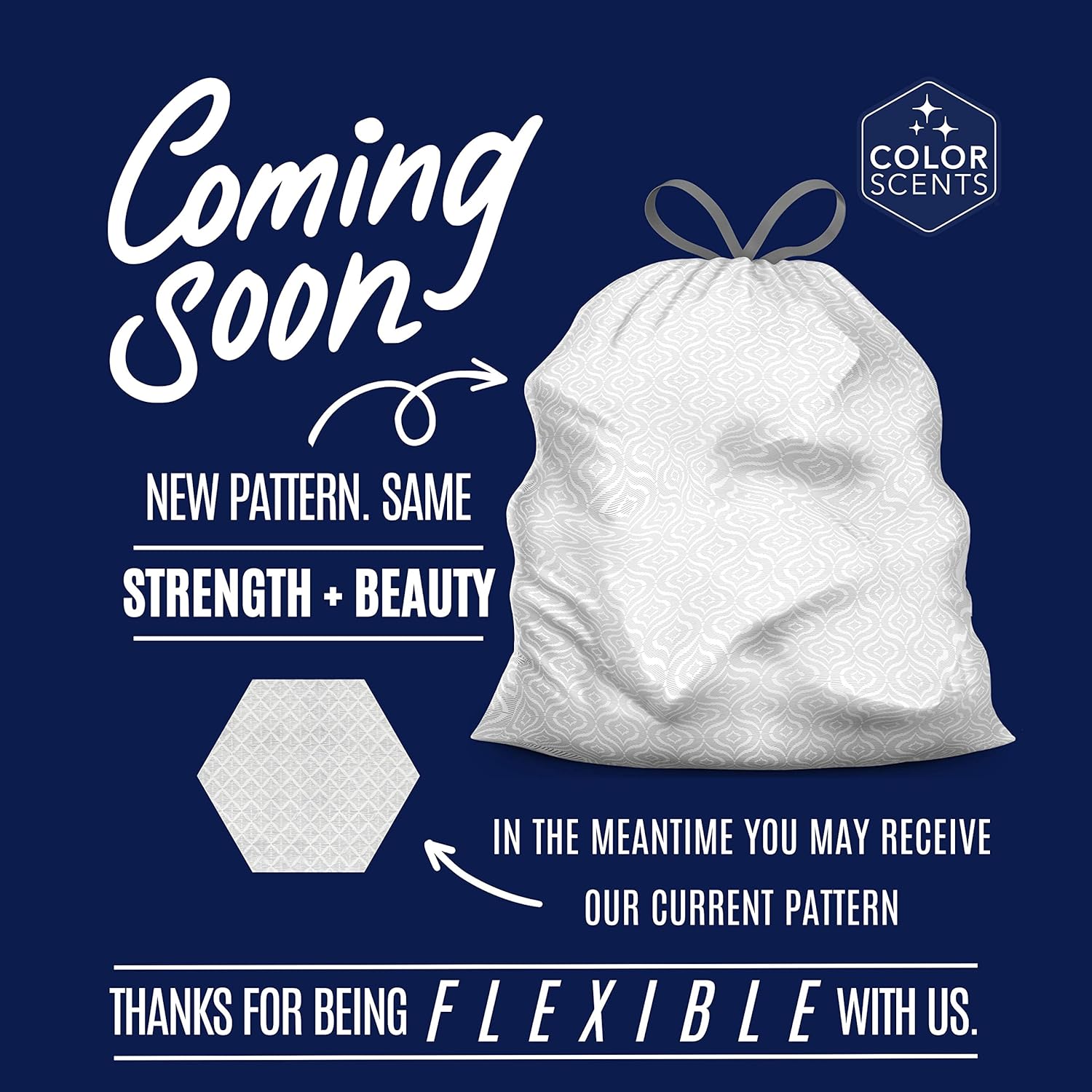 - FLEX STRENGTH: Superior leak & tear protection. With 0.9 MIL thickness from top to bottom, Color Scents trash bags are strong enough to get the job done right!