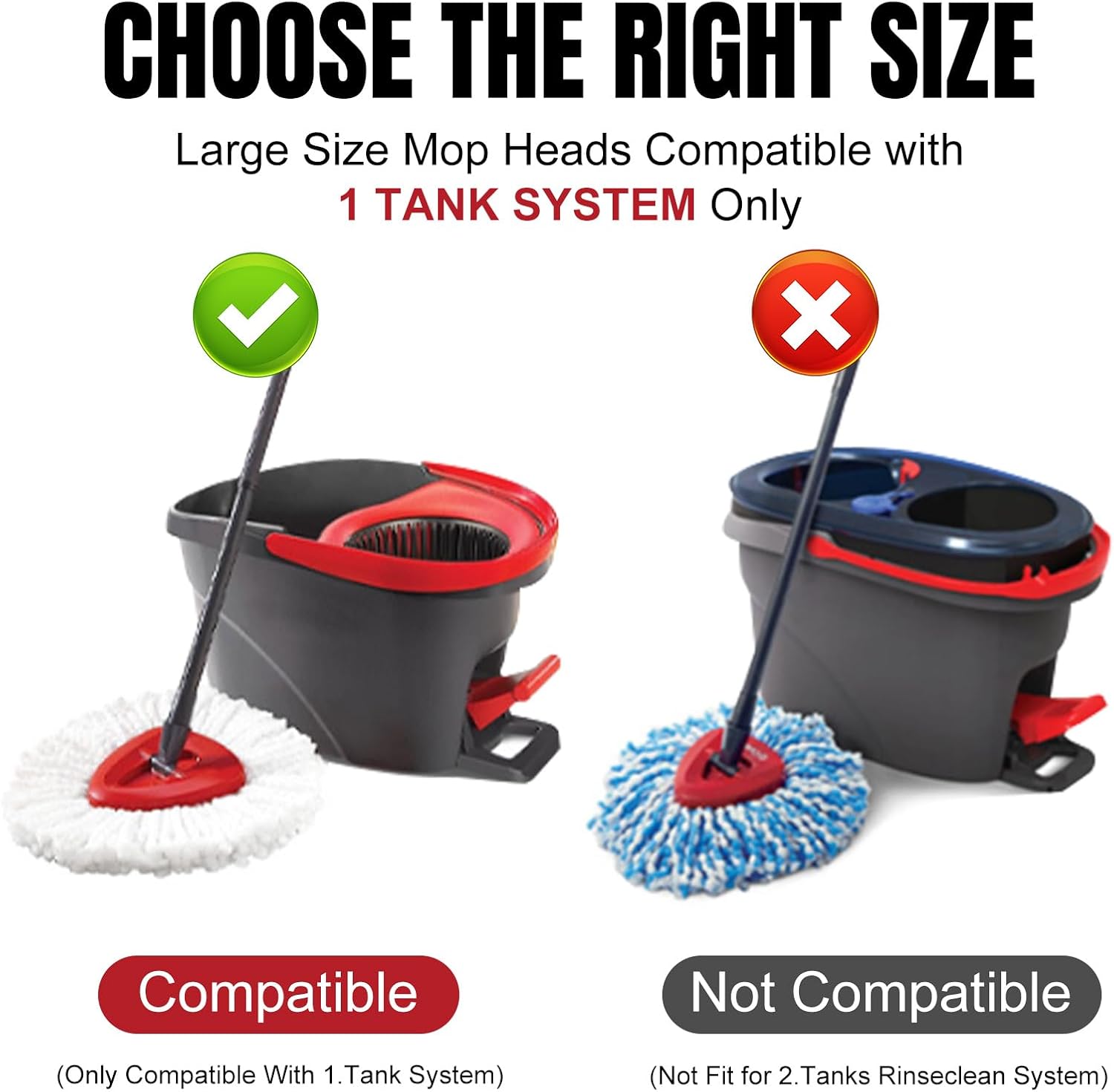 - Rinse Clean 1-Tank Bucket System: Each spin mop head is packaged independently for easy storage and space saving, Not available for 2 cylinder rotary mop system