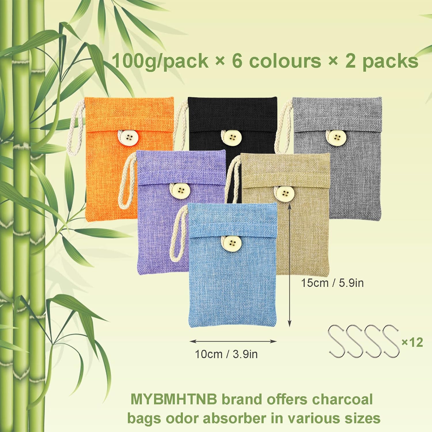 Bamboo Charcoal Bags Odor Absorber 12 Pack×100g Bamboo Charcoal Air Purifying Bags, for Car Air Fresheners, Odor Eliminator for Home,Shoe Deodorizer - Colorful-Activated Charcoal Odor Absorbers