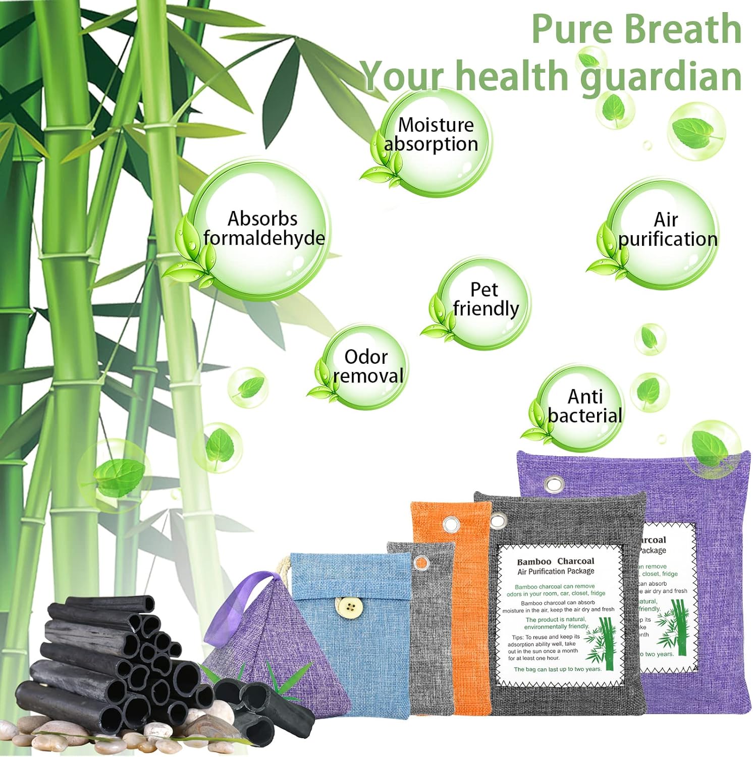 - Worry free service:We are very confident in our bamboo charcoal air purifying bags.If these natural odor eliminator do not meet your expectation, please contact us. We replace or refund unconditionally. There is no risk to you when you purchase odor absorber. We're sure you'll love these eco-friendly activated bamboo charcoal bags.
