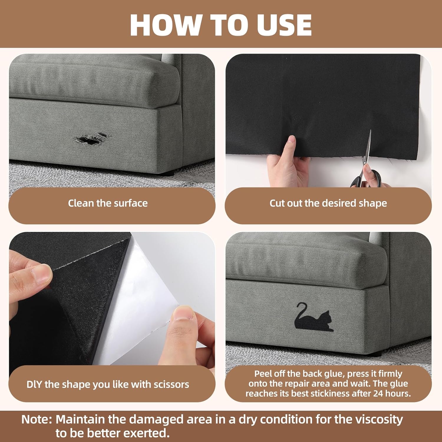 - Multi-purpose: Fabric repair kits works perfectly with fabrics such as linen, velvet . You could use sticky fabric on items like old furniture, couch, sofa, car interior, etc.