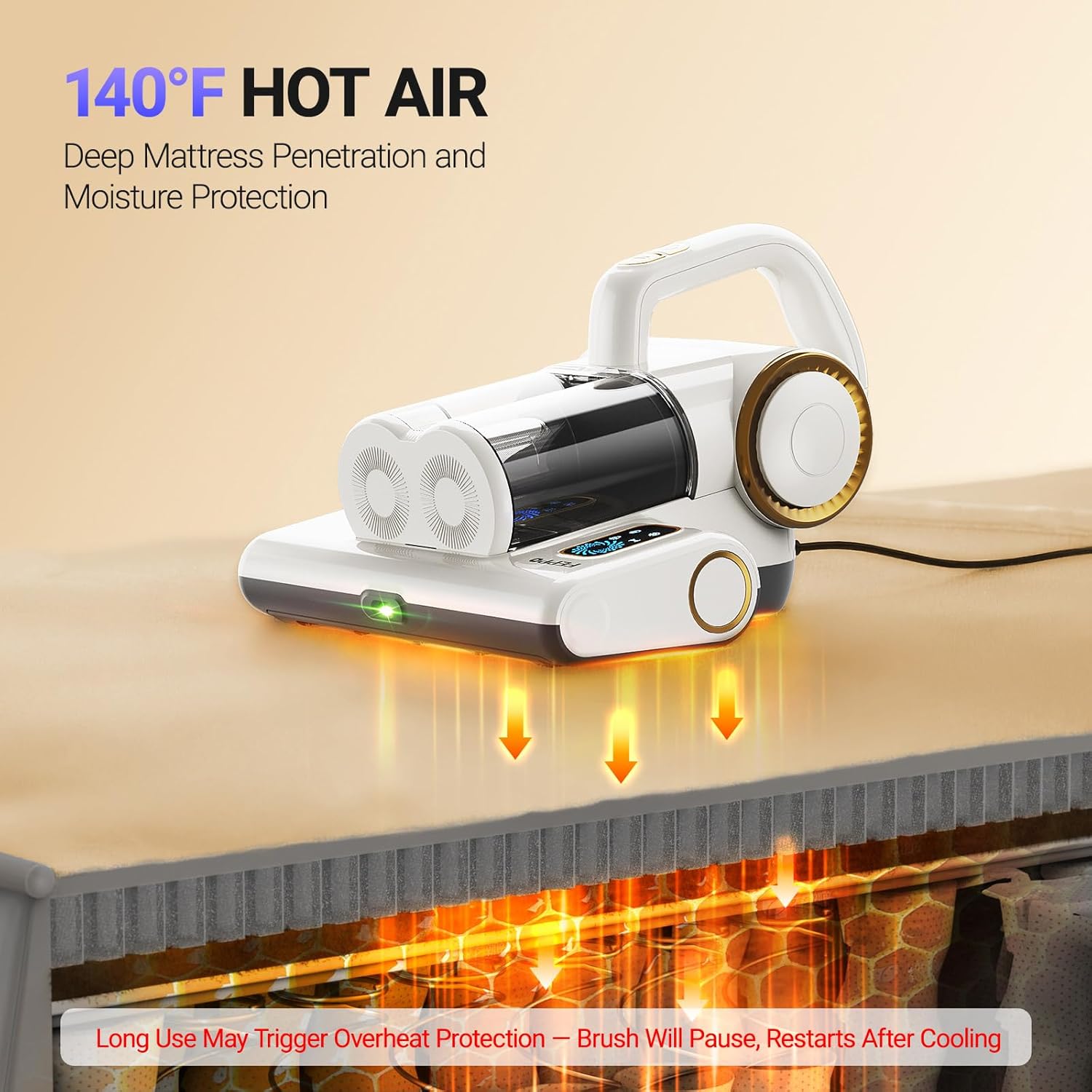 - 【High-Temperature Drying】The mattress dust remover produces 140°F high-temperature dry air that penetrates deeply into fabrics like mattresses and sofas, effectively eliminating harmful substances, reducing moisture and odors, keeping the clean area dry and fresh, and helping to create a healthy, comfortable sleep environment.
