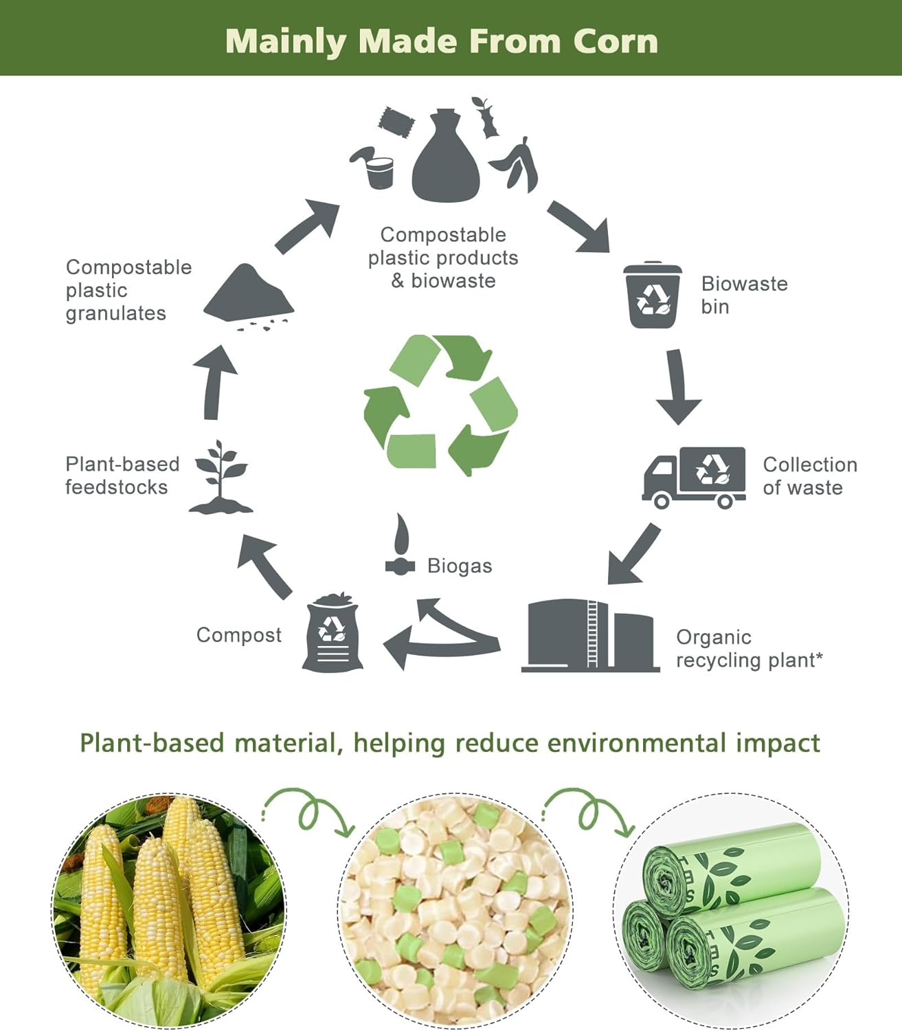 - Biodegradable Compost Bags: AYOTEE compost trash bags unscented are mainly made by mixing plant-based corn starch material. Adopting carbon neutral production methods to reduce dependence on oil and achieve energy conservation and emission reduction. Also AYOTEE actively using biodegradable paper packaging boxes to promote the reduction of plastic pollution on earth and leave with a greener future