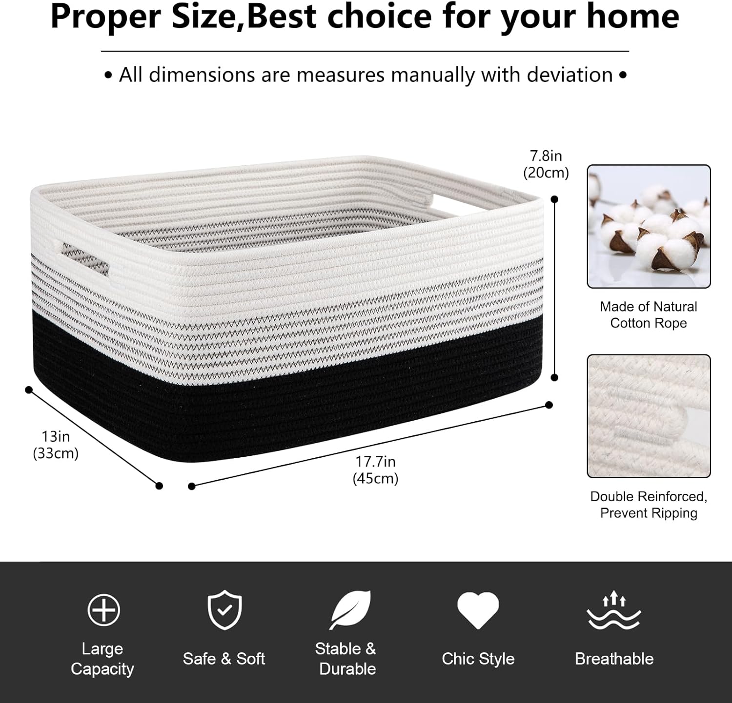 - Soft and Durable: Hand-stitched from high-quality natural cotton rope. Our baskets are very soft and baby-friendly. Seamless design, with no odor or sharp edges, not easy to tear, Great for nurseries storage and closet organization