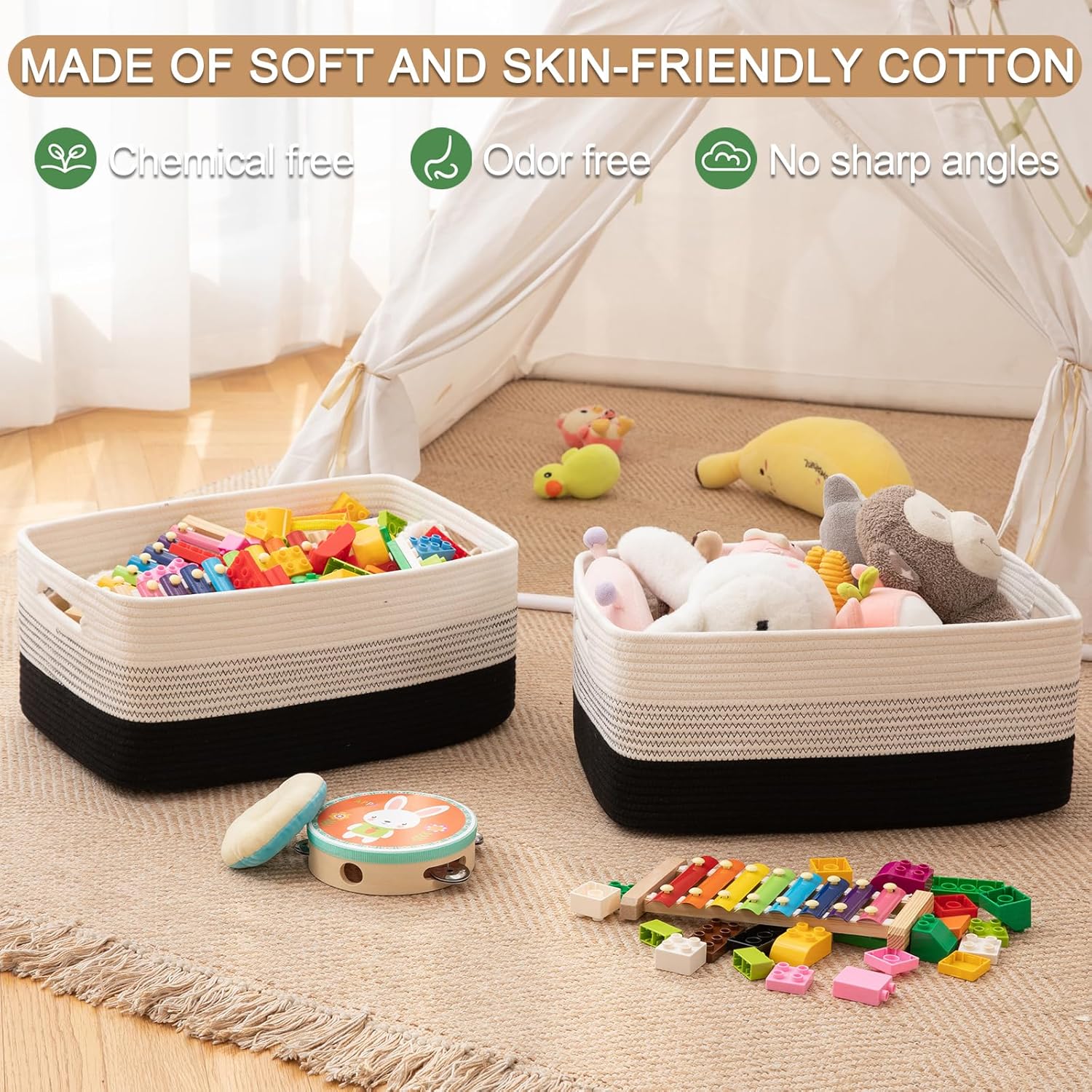 - Versatile and Convenient: Perfect as clothing baskets, baby baskets, toy bins, dog toy baskets, playroom organizers, entryway shoe baskets, and blanket baskets, or as decorative baskets and large gift baskets. A great way to reduce clutter for better organization and less stress