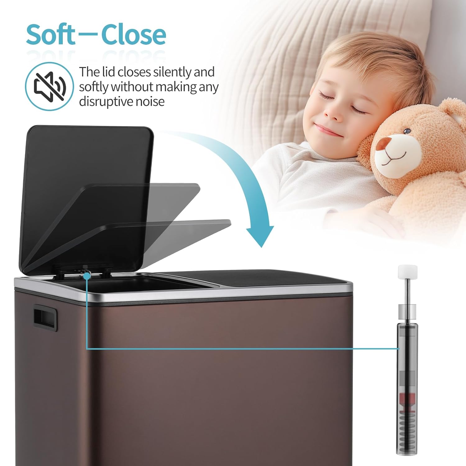 - 2×8-Gallon Compartments: 16-gallon step trash can has two compartments, combining garbage and recycling. Completely separated dual garbage and recycling can also avoid the smell of garbage. 2 removable inner buckets increase convenience
