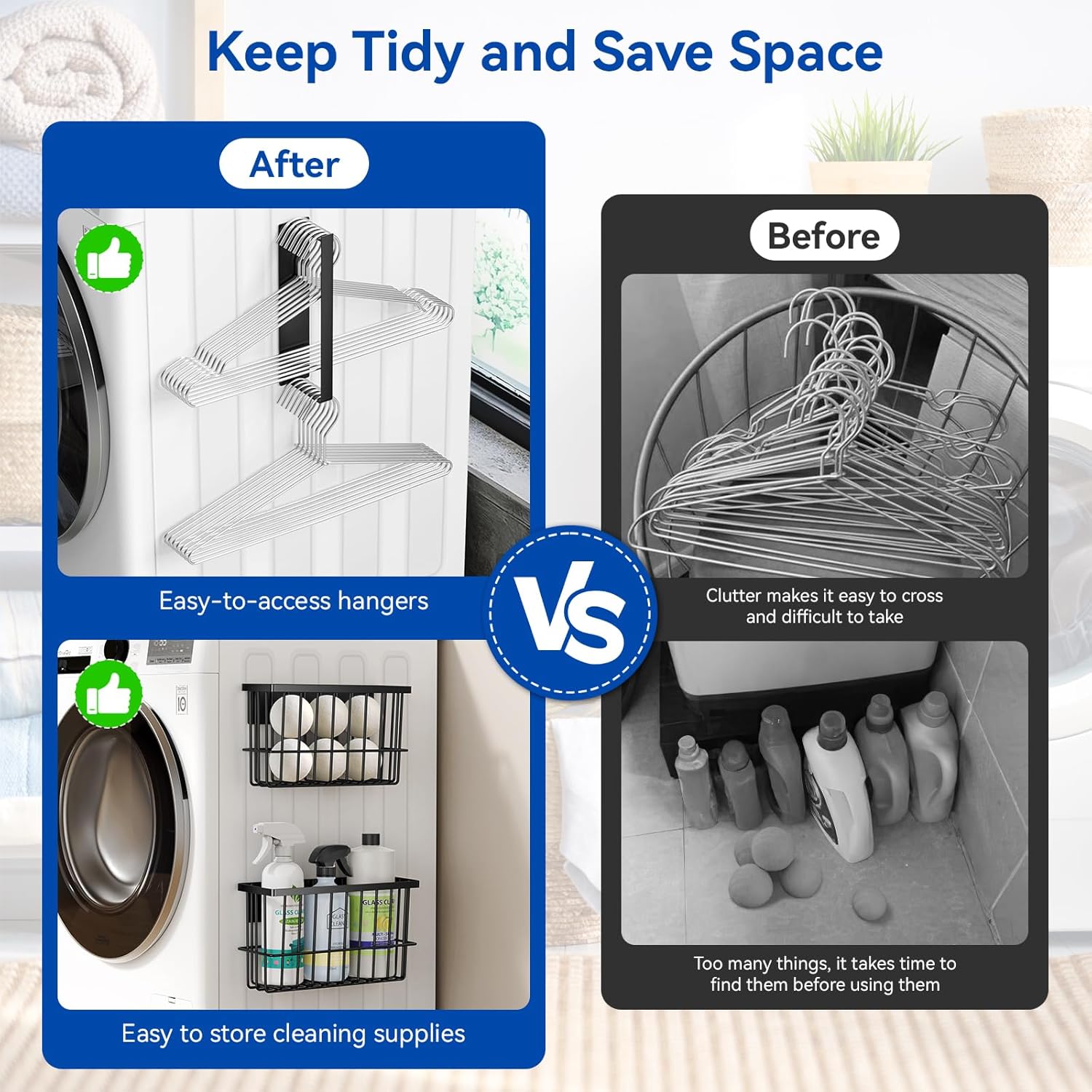 - Maximize Laundry Room Organization and Storage Space: The magnetic dryer ball holder and hanger organizer can be placed on the side or front of the dryer for easy to access and saving space on the laundry countertop. The small space in a small laundry room can also be reasonably utilized, and there will be no more messy placement and scattering.