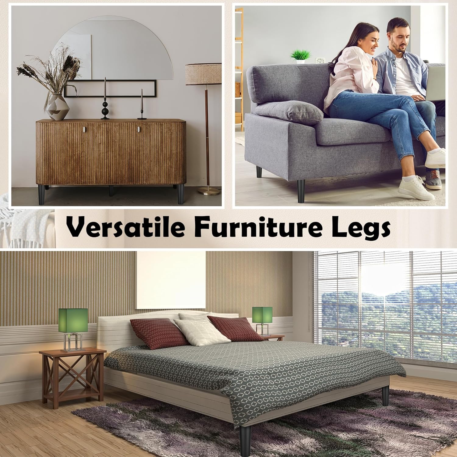 - Versatile Use: these plastic sofa and chair legs are suitable for a wide range of furniture, including sofas, coffee tables, dressers, beds, desks, cabinets, TV stands, etc., with a simple design and complete accessories, they effortlessly refresh the look of your home
