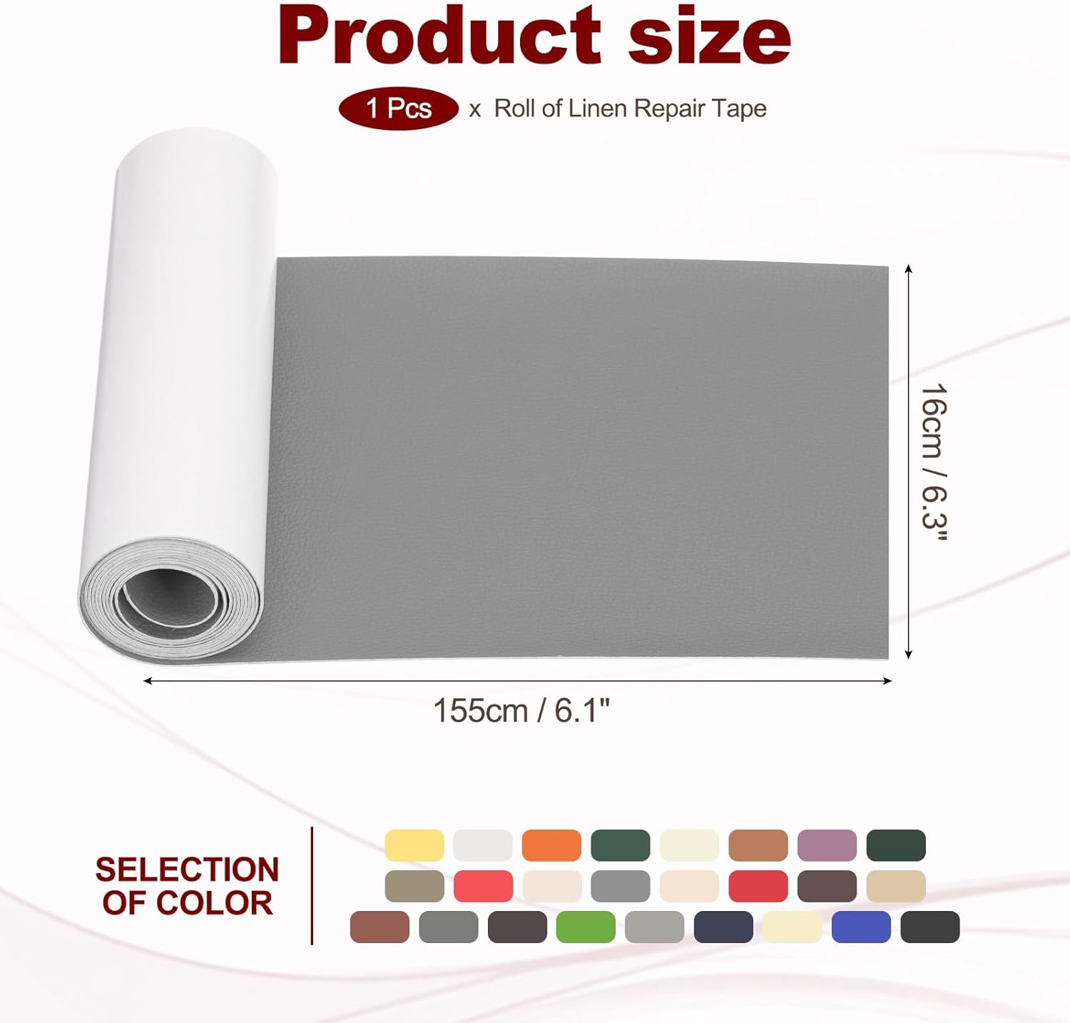 - Material: PVC Leather; Color: Light Gray; Size: 16 x 155 cm / 6.3 x 61 inch; Package Included: Leather Patches x 1 Roll