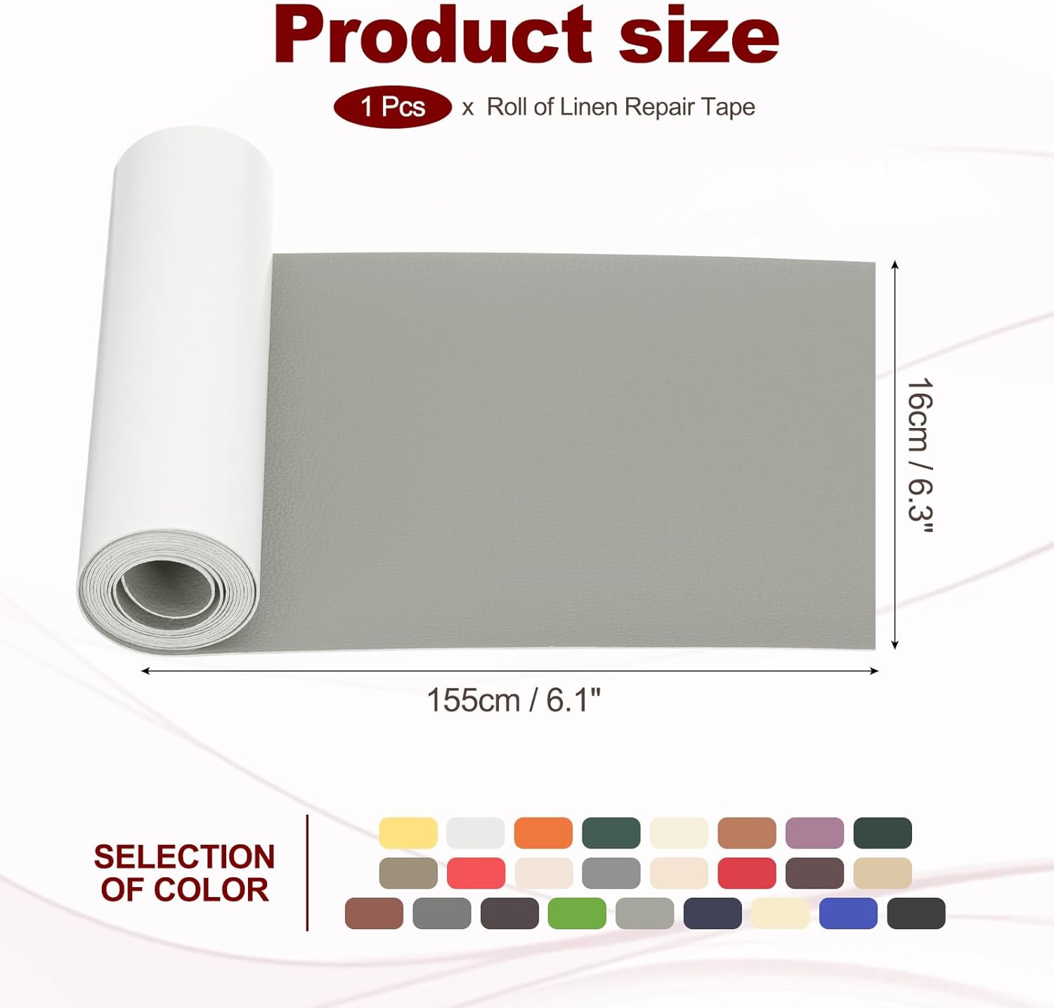 - Material: PVC Leather; Color: Elegant Gray; Size: 16 x 155 cm / 6.3 x 61 inch; Package Included: Leather Patches x 1 Roll