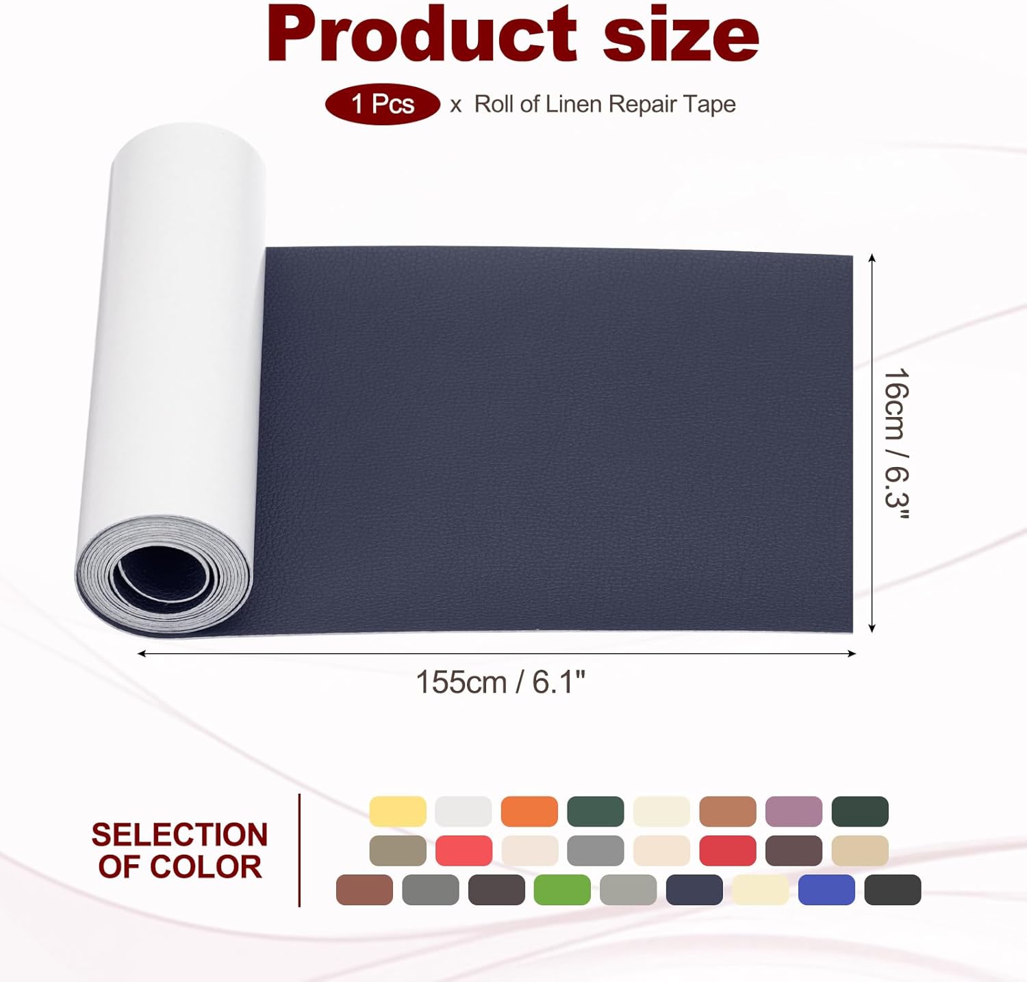 - Material: PVC Leather; Color: Navy Blue; Size: 16 x 155 cm / 6.3 x 61 inch; Package Included: Leather Patches x 1 Roll