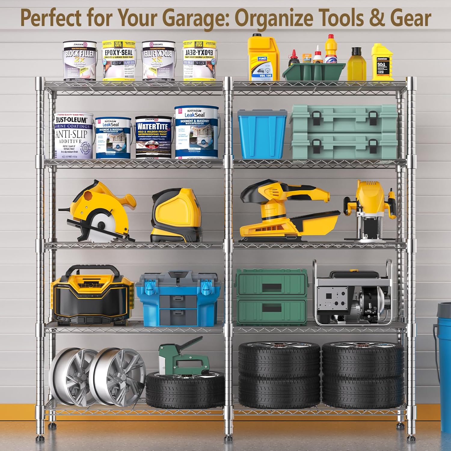 - Special Feature : Heavy Duty, Adjustable, 5 Tier Wire Shelving Unit, Metal Shelving, Space Saving, Leveling/Corner Mounting Heavy Duty, Adjustable, 5 Tier Wire Shelving Unit, Metal Shelving, Space Saving, Leveling/Corner Mounting