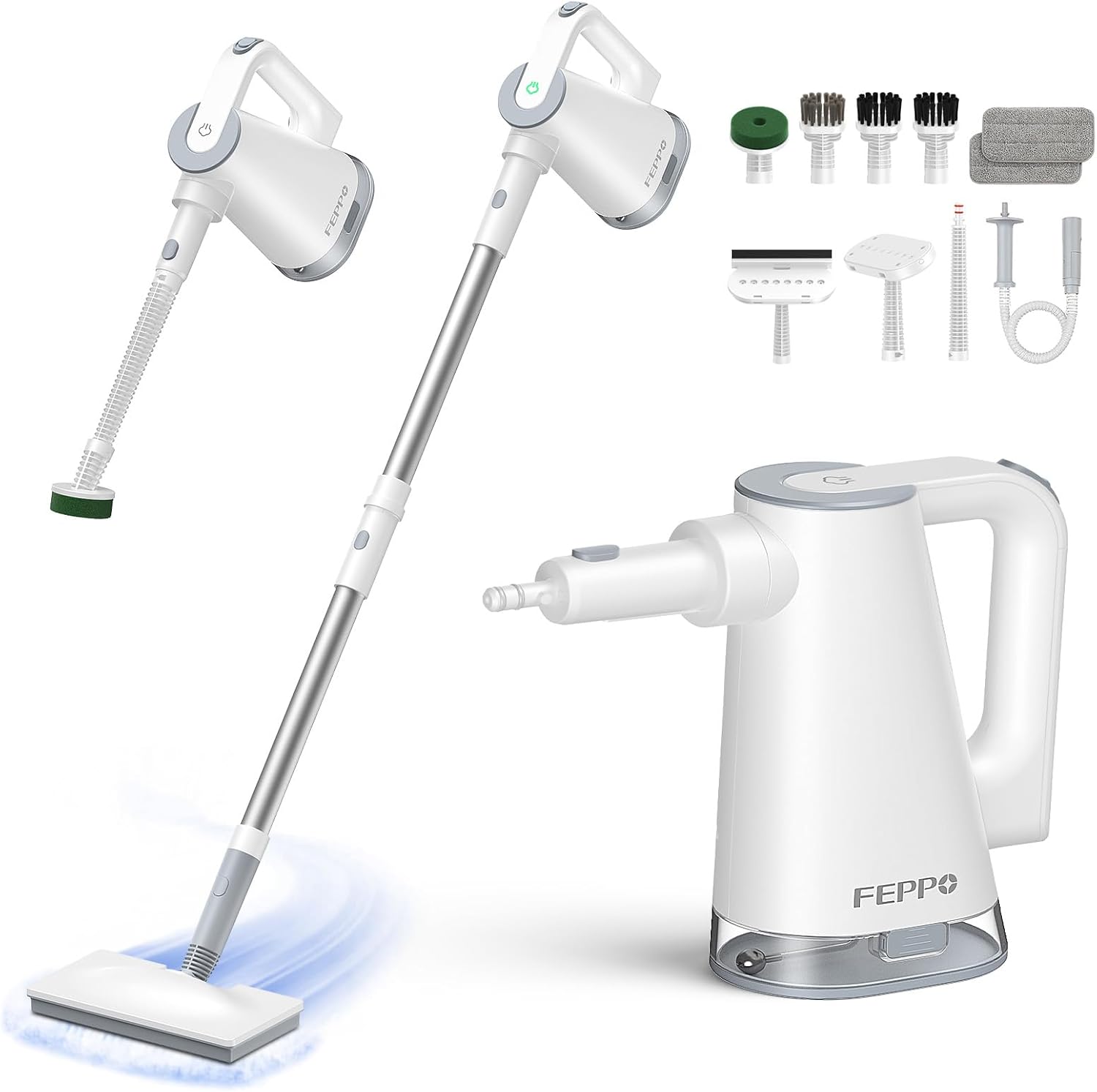 FEPPO Steam Mop with Detachable Handheld Steam Cleaner for Home and Floor Cleaning, 10-in-1 Multi-purpose Attachments & 2 Pads, Powerful Steamer for Floors, Hardwood, Tiles,Grout,Windows,Kitchen,Bath