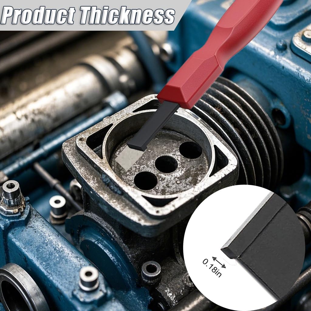 - 【Wide Application Range】This professional scraper tool is suitable for removing gasket residue, carbon and rust from steel and aluminum heads, as well as cleaning disc brake caliper slides and other metal surfaces. Not for use on glass or as a windshield scraper.