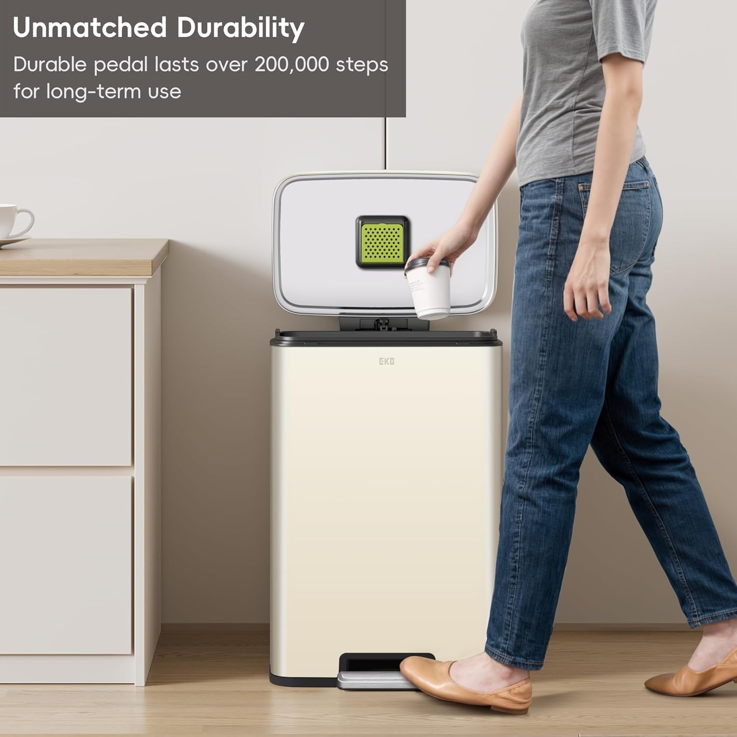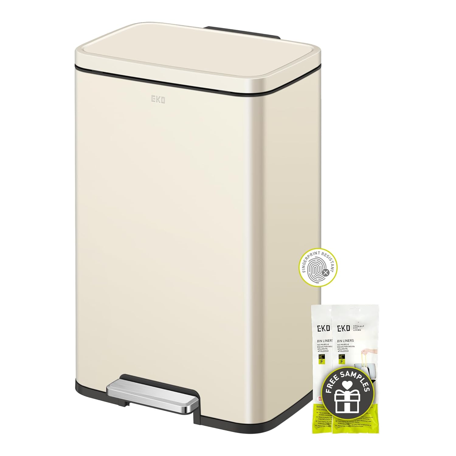 EKO Madison Vanilla Stainless Steel 50 Liter/13.2 Gallon Step Trash Can with Inner Liner - Fingerprint Resistant Finish