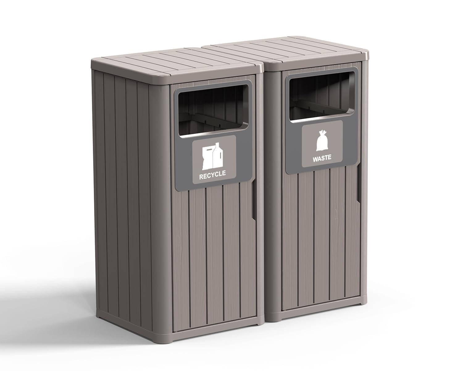 ROJIK 35" Tall Outdoor Trash Can,Weatherproof Resin Garbage Indoor Durable Lightweight,Suitable for Patio Office Kitchen,Easy to Clean,Assemble(Waste&Recycle,Grey)