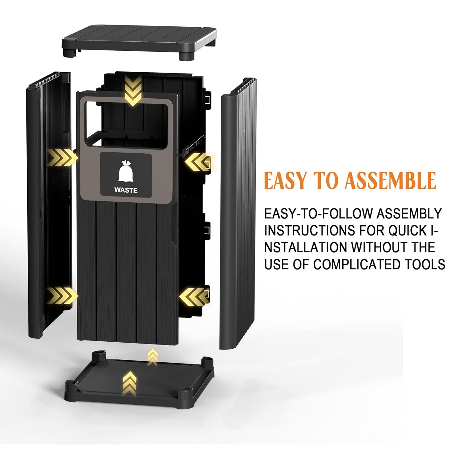 ROJIK 35" Tall Outdoor Trash Can,Weatherproof Resin Garbage Indoor Durable Lightweight,Suitable for Patio Office Kitchen,Easy to Clean,Assemble(Waste, Black)