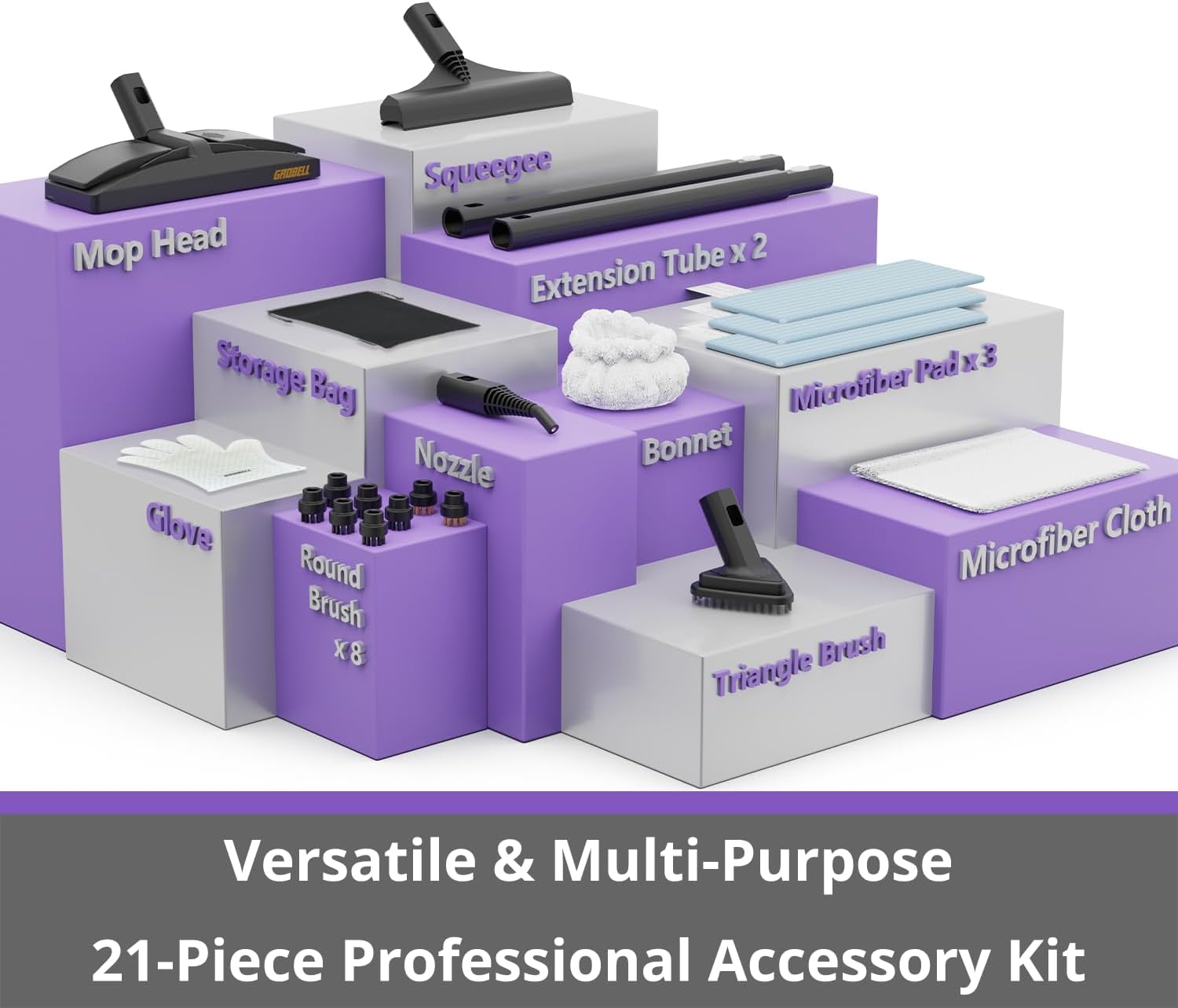 - [Versatility]: Handheld steamer comes with 21 basic accessories, allowing for easy and eco-friendly completion of cleaning tasks. It can be used on various surfaces, from hard floors and glass to furniture and even clothing. They are designed to handle hard-to-reach areas and can be used to clean everything from interior decorations to kitchen utensils