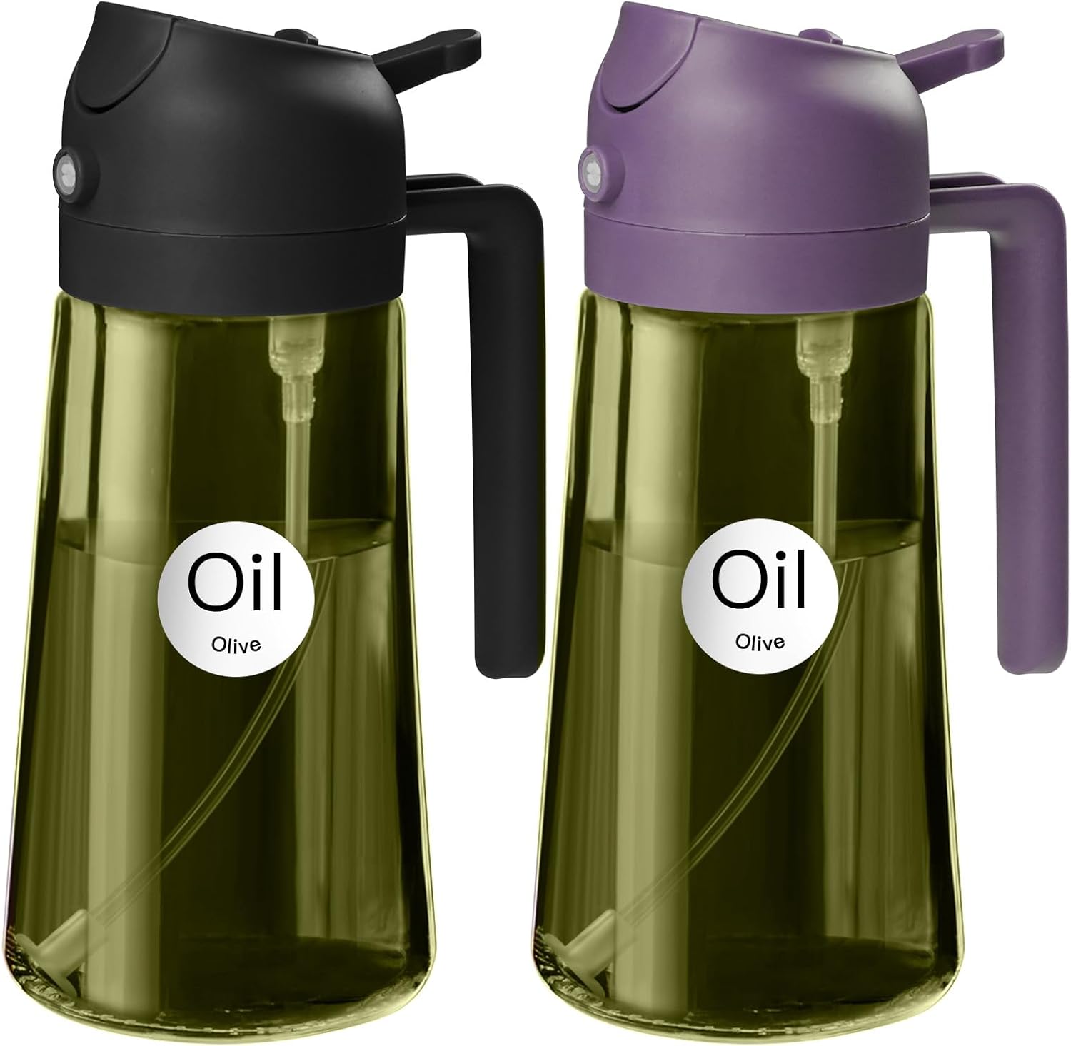 YARRAMATE 2Pcs 16oz/470ml Dark Green Oil Sprayer for Cooking with Stickers, Food-grade Premium 2 in 1 Olive Oil Dispenser Bottle for Kitchen Gadgets, Air Fryer, Salad, Frying, BBQ (Black&Purple)