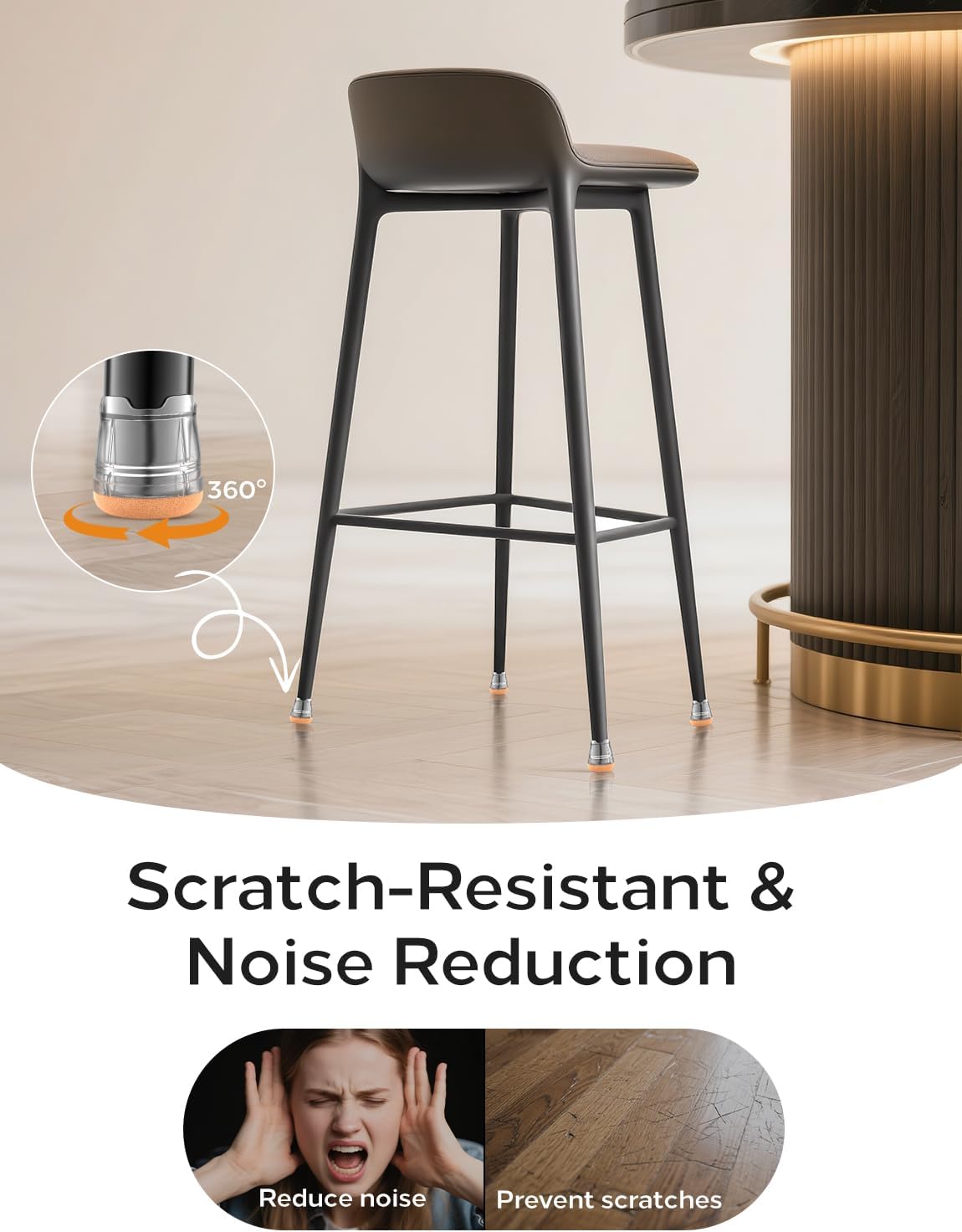 - 360° Felt-Bottom floor protectors- 360 ° fully wrapped felt design. Made from high-density industrial felt and flexible silicone to withstand daily wear, heavy chairs, and frequent movement without tearing or flattening, ensuring long-lasting floor protection.