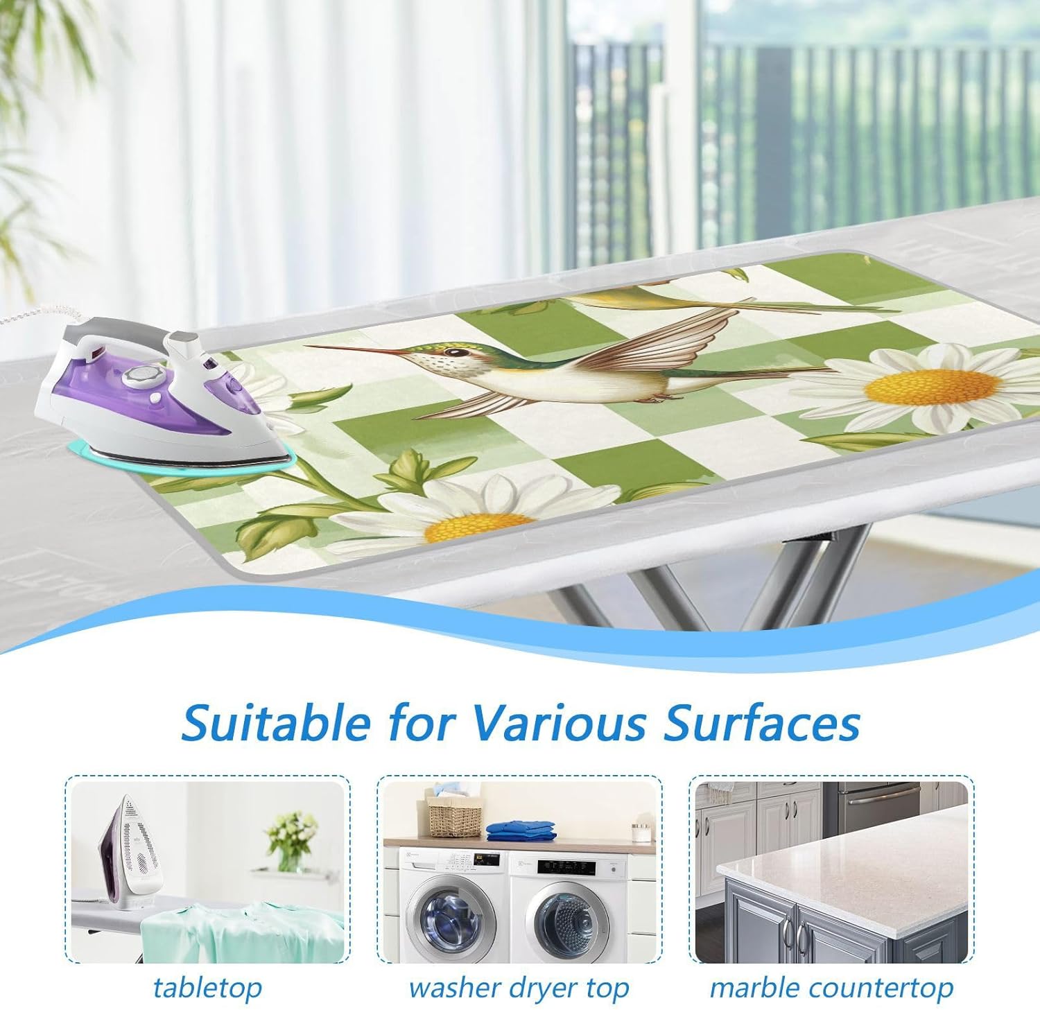 Ironing Mat Portable Ironing Pad Ironing Blanket for Table Top Heat Resistance Double-Side Using Travel Large 47.2 x 27.6 Inch Foldable Lightweight Checkered Green and White Hummingbirds