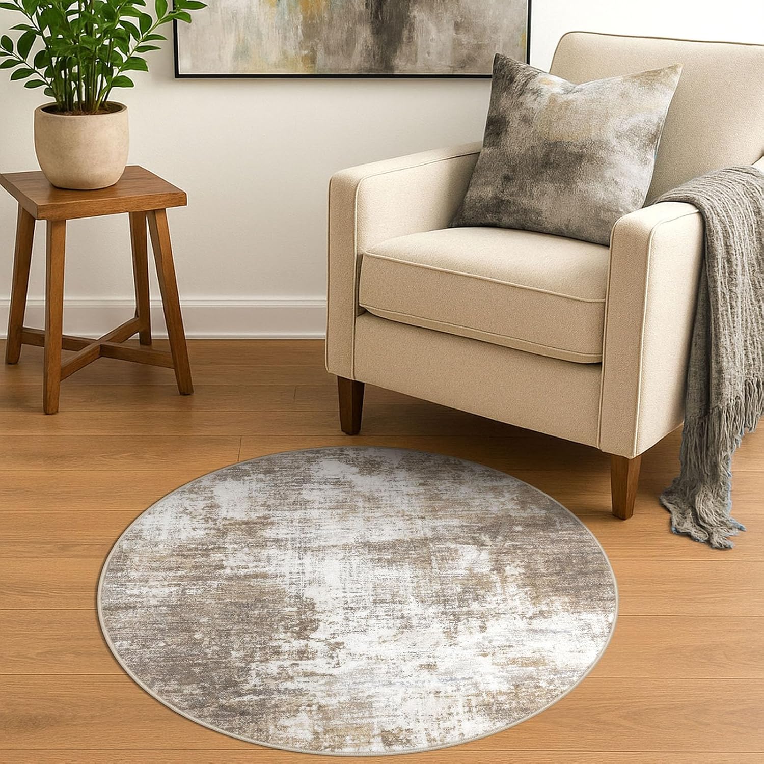 - Modern Abstract Printed Design: Transform your home with the modern abstract rug, a perfect blend of art and functionality. Printed with a modern abstract pattern, Its dynamic splashes of brown, gray, and beige hues add a vibrant touch to any room