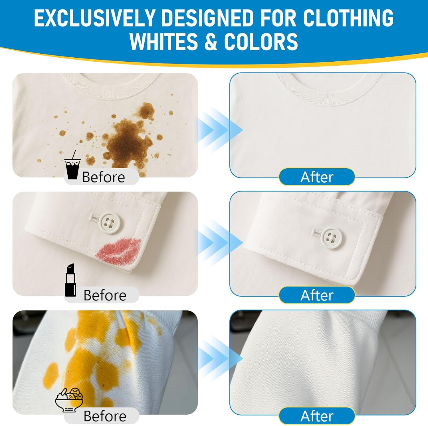 - Safe for Whites & Colors – Specially formulated bleach pen for clothing that works on both white and colored fabrics, removing stains without causing fading.