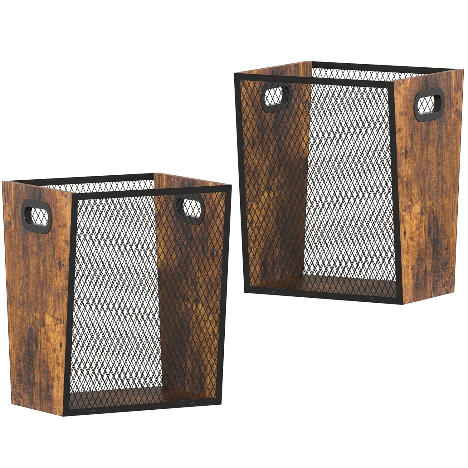 Piskyet Rustic Office Trash Can for Near Desk,7 Gallon Unique Wood Bedroom Garbage Can,Vintage Wastebasket with Handle, Decorative Trash Can for Home Office,2pack 12.2"L x 9.6"W x 14.9"H,Rustic Brown