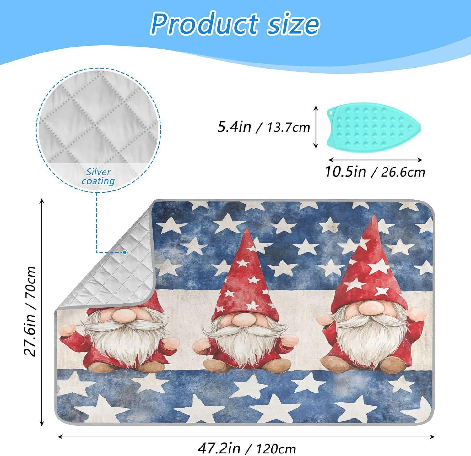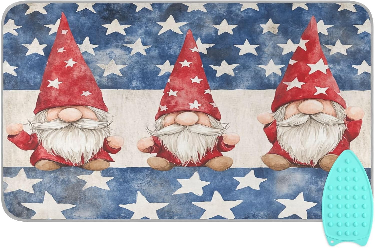 Three July 4th Gnomes Stars Ironing Mat for Table top Portable Ironing Pad Blanket for Washer Dryer Countertop Travel