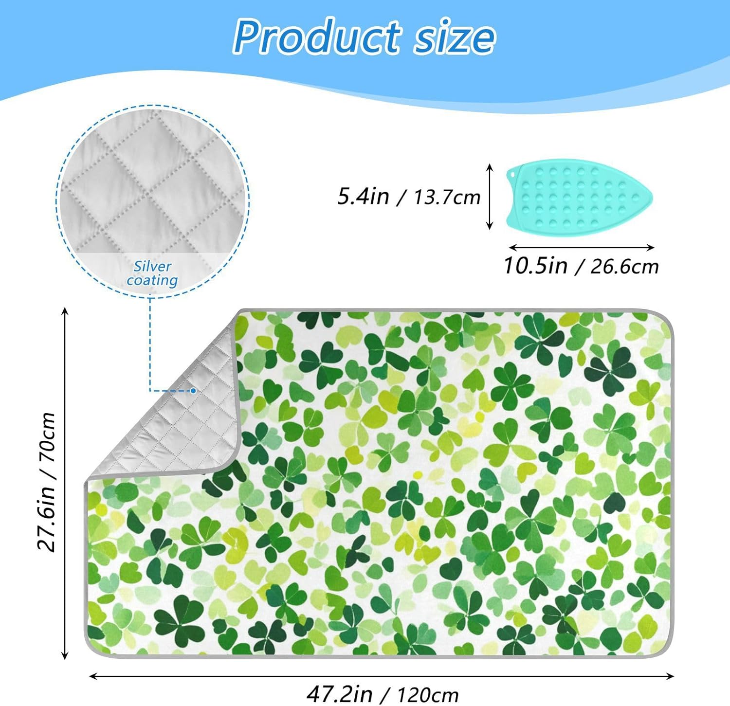 - Size:The size of this ironing board pad is 27.6*47.2in, with a foldable design that saves space for storage, is lightweight and flexible, making it convenient for home and travel use