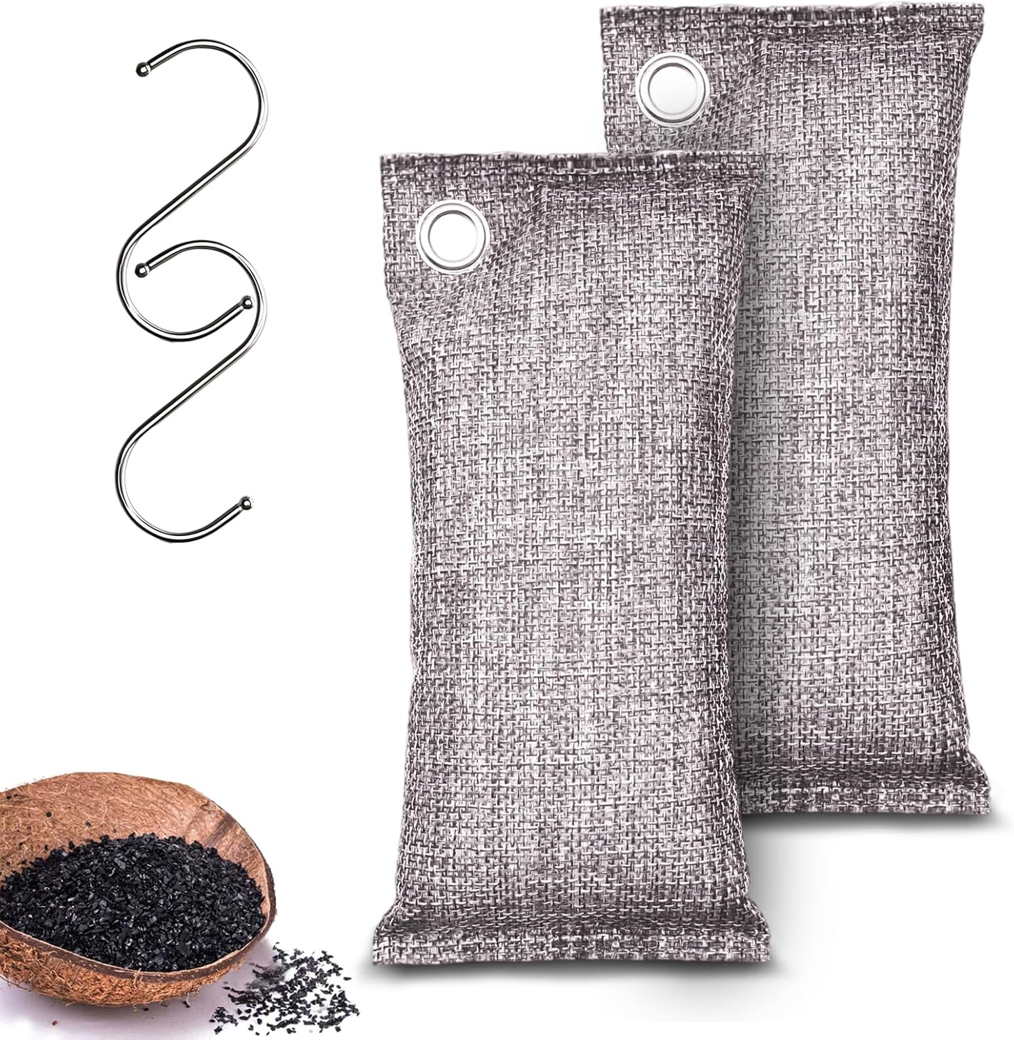 - Natural, Non-toxic, and Safe: The Coconut Shell charcoal bags are made of 100% Nature. They are safe for children and pets, without any fragrance and chemicals. Standard size Coconut Shell charcoal particles have a larger contact area with air, the performance of adsorption is better, effectively remove odors and bring fresh air.