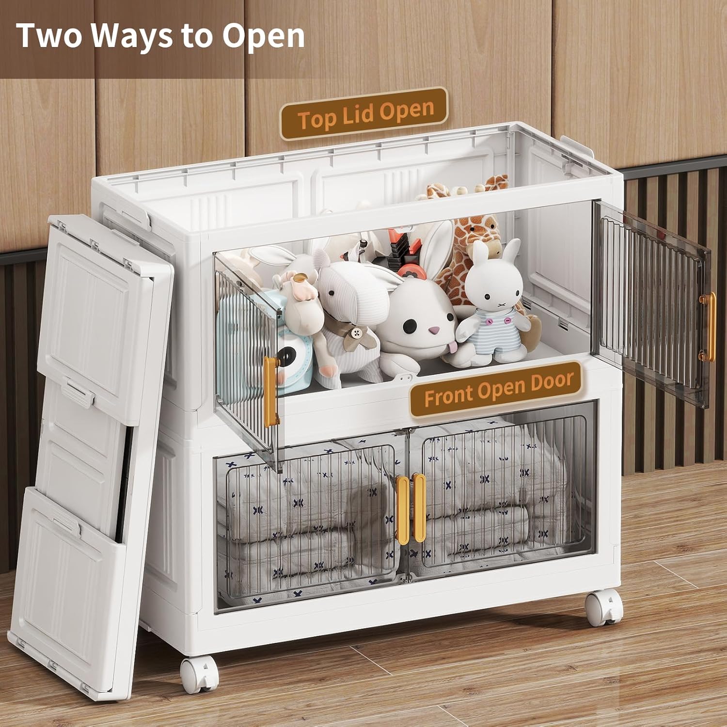 - Two Opening Ways: There are two ways to open the lid storage box. You can open the top cover or open it from the front door. The front cover of each plastic drawer storage is translucent, and you can clearly see the items stored inside, which is a good assistant to our family