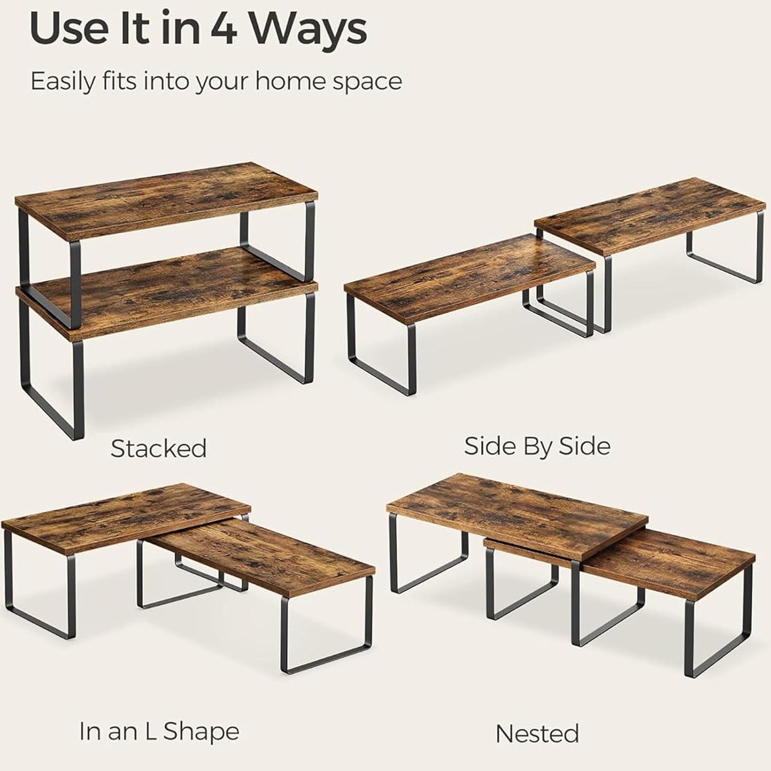 - PRACTICAL DIMENSIONS: Each shelf unit provides multiple tiers of storage space, optimizing vertical space in cabinets and on countertops