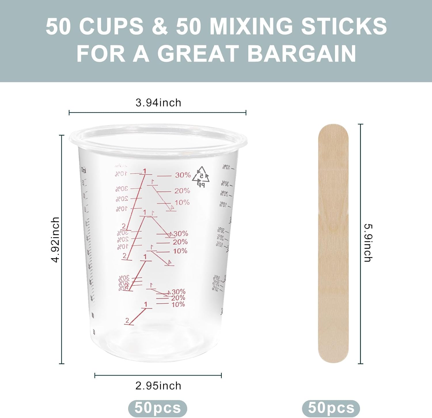 50-Pack Mixing Cups Set Paint Mixing Cups 20 oz (600ml) with 50 Wooden Sticks,Easy Measuring Ratios 2:1, 3:1, 4:1,Ideal for Epoxy Resin, Paint, and More
