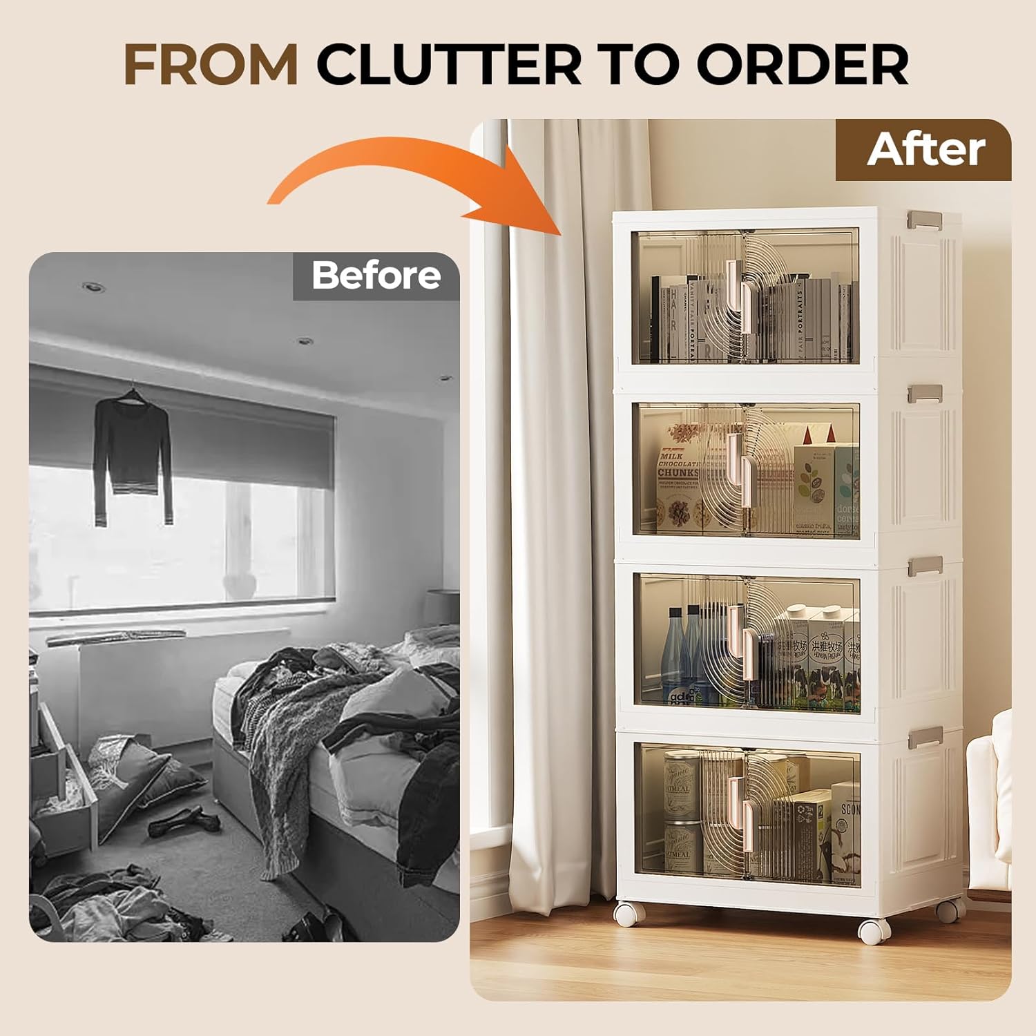 - Multifunctional Storage: FeouBlf stackable storage bins provide up to 44.4Gal/177.6 QT of space — perfect for organizing anything, anywhere. Perfect for household use—such as bathroom toiletries, kitchen utensils, cleaning supplies, and small appliances—as well as for managing living room clutter, office files, or dormitory essentials. No more clutter in sight!