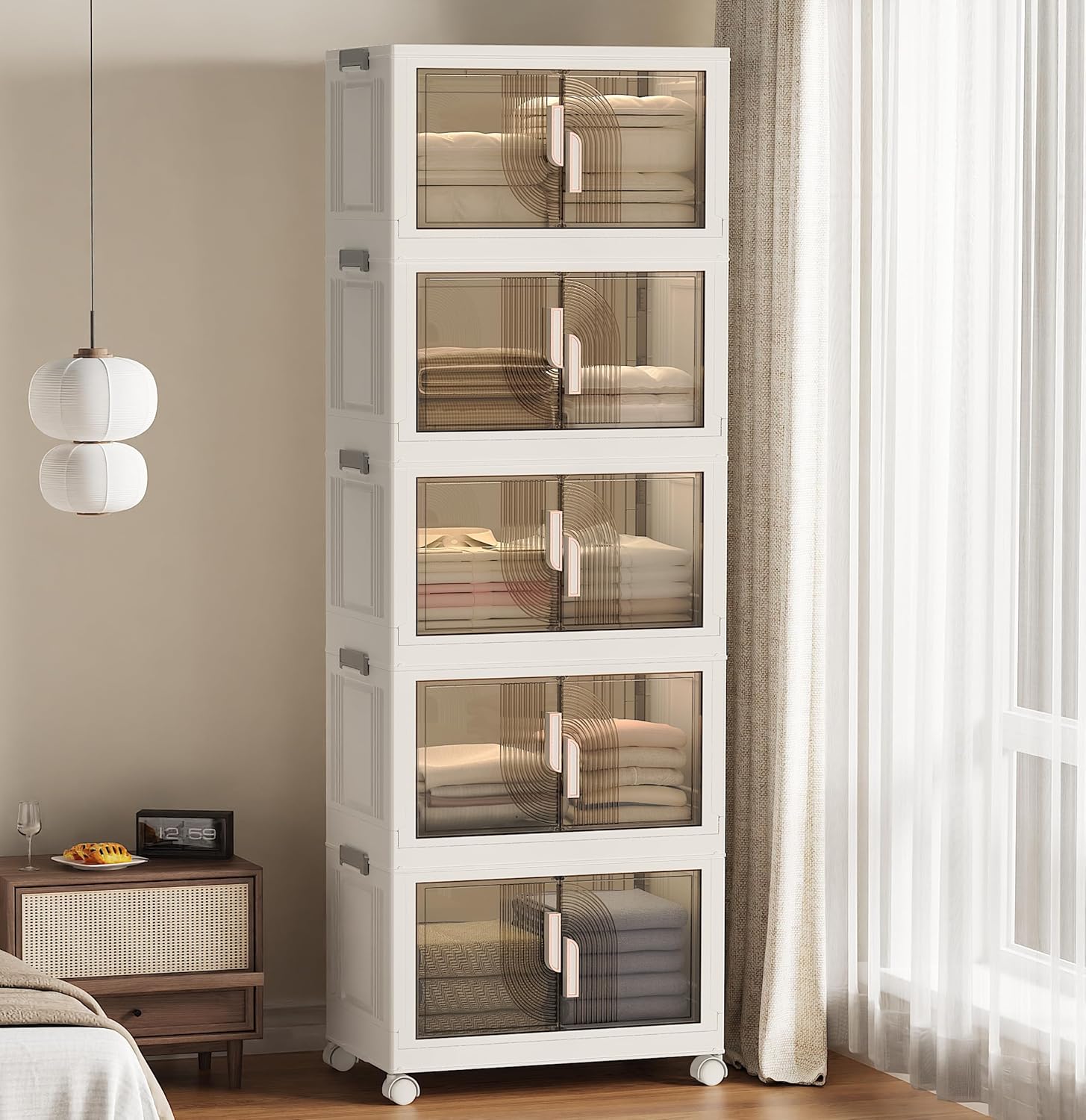 Elegant 5 Tiers Stackable Storage Bins for Home Organization, Moveable Plastic Storage Bins with Lids, Easy Assembled Storage Box for Closet Organizers and Storages Dorm 22" W x 12.4" D x 61.2" H