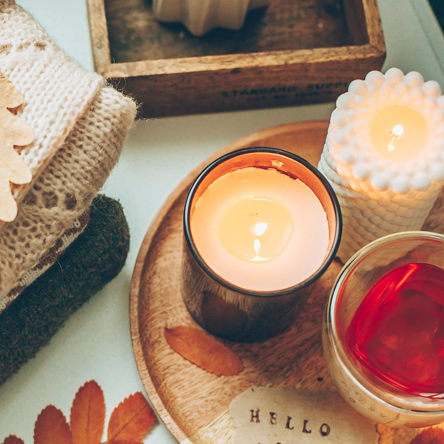 - [Glass Candle Vessel] A perfect fall candle jars for making candles. Designed with wood lid and glass , stylish appearance, simple and modern, can be used as elegant home decoration, candlelight through the candle jars, create a warm family atmosphere.
