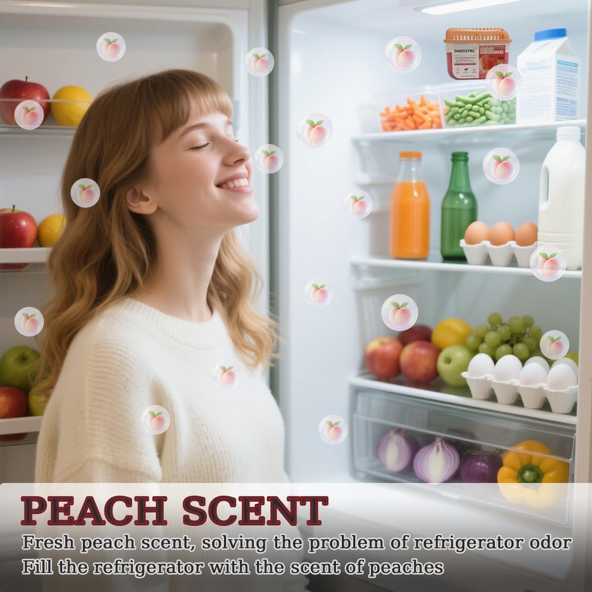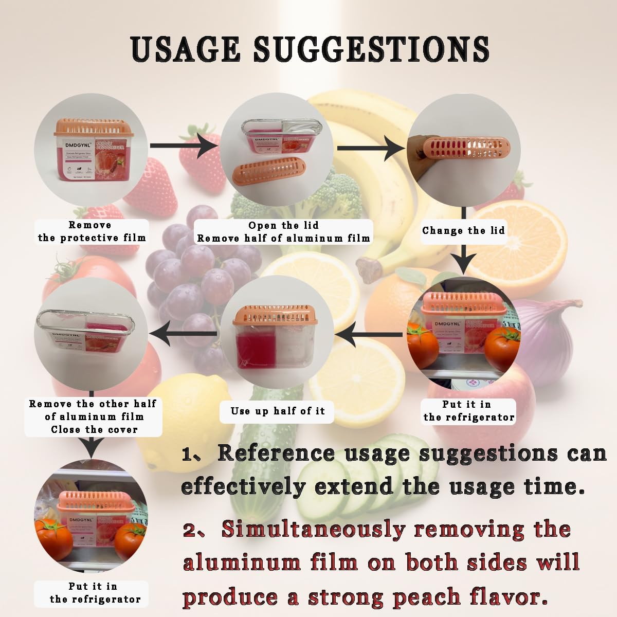 - COMPACT & EFFECTIVE: The volume of the refrigerator deodorizer is small, which saves refrigerator space. Having a slight peach flavor, it does not mask the odor with fragrance, but rather makes the scent disappear. Remove the pink lid, remove the aluminum film, cover the lid, and put it in the refrigerator. The usage method is simple.