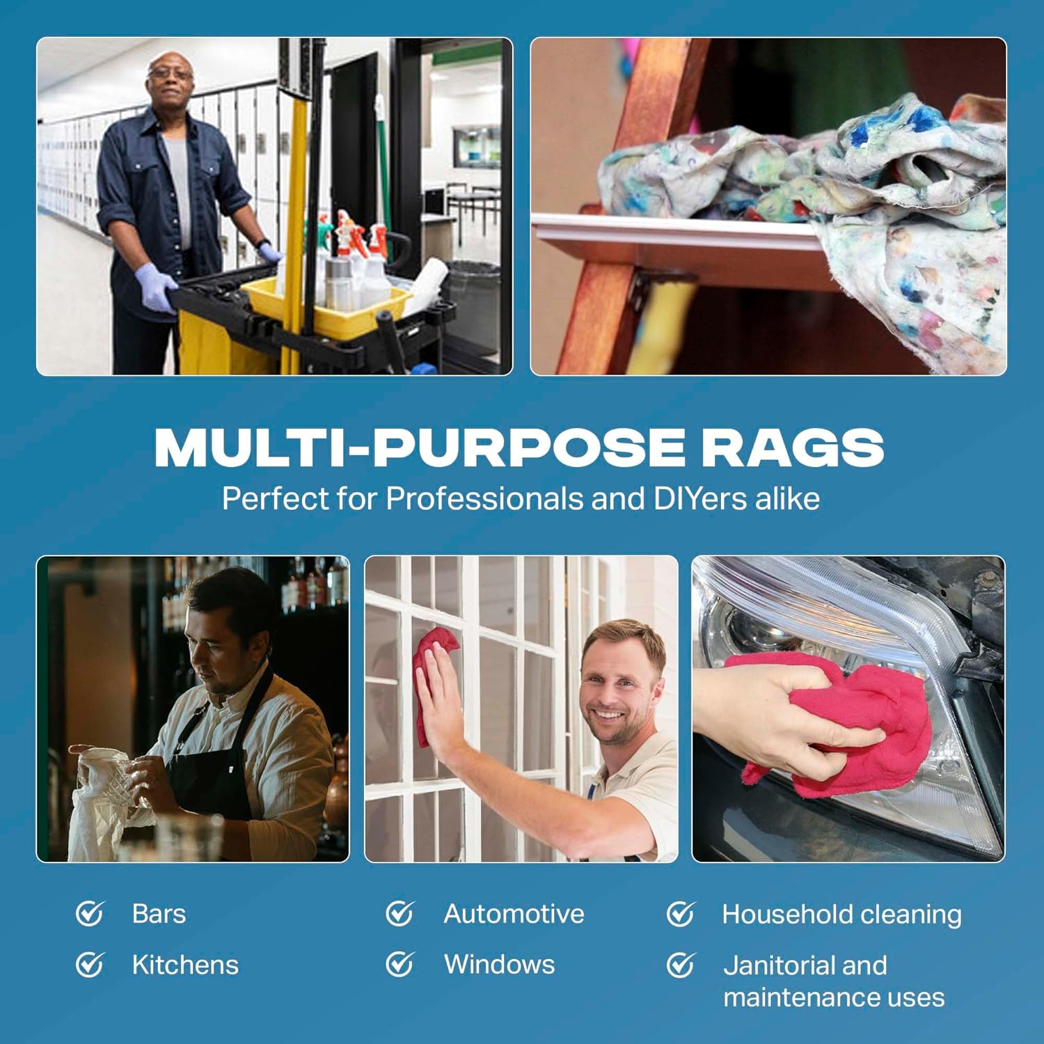 - Ultimate Multi-Purpose Cleaning Rags: This 1000 unit box of rags includes professional grade red shop towels made from premium cotton. These cotton shop towels are perfect for mechanics, auto shops, garages, and industrial environments. Use these lint-free cleaning rags to wipe grease, oil, dirt, and spills with confidence and ease.