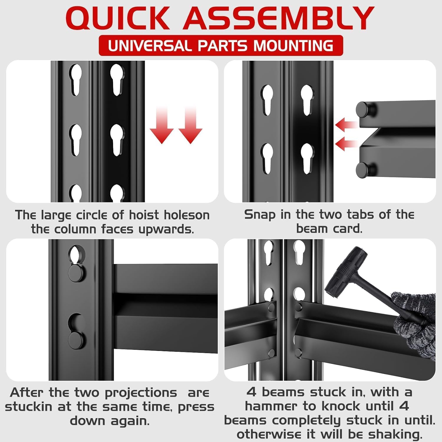- 【Safer & Stronger Rolled Edge Design】Built tougher and safer! Forget flimsy, sharp-edged posts. Our shelving features a premium rolled-edge design on the metal columns. This not only makes the columns thicker and more durable but also protects your hands from cuts and scratches. It's the smarter, safer choice for garage shelves or shelves for garage storage.