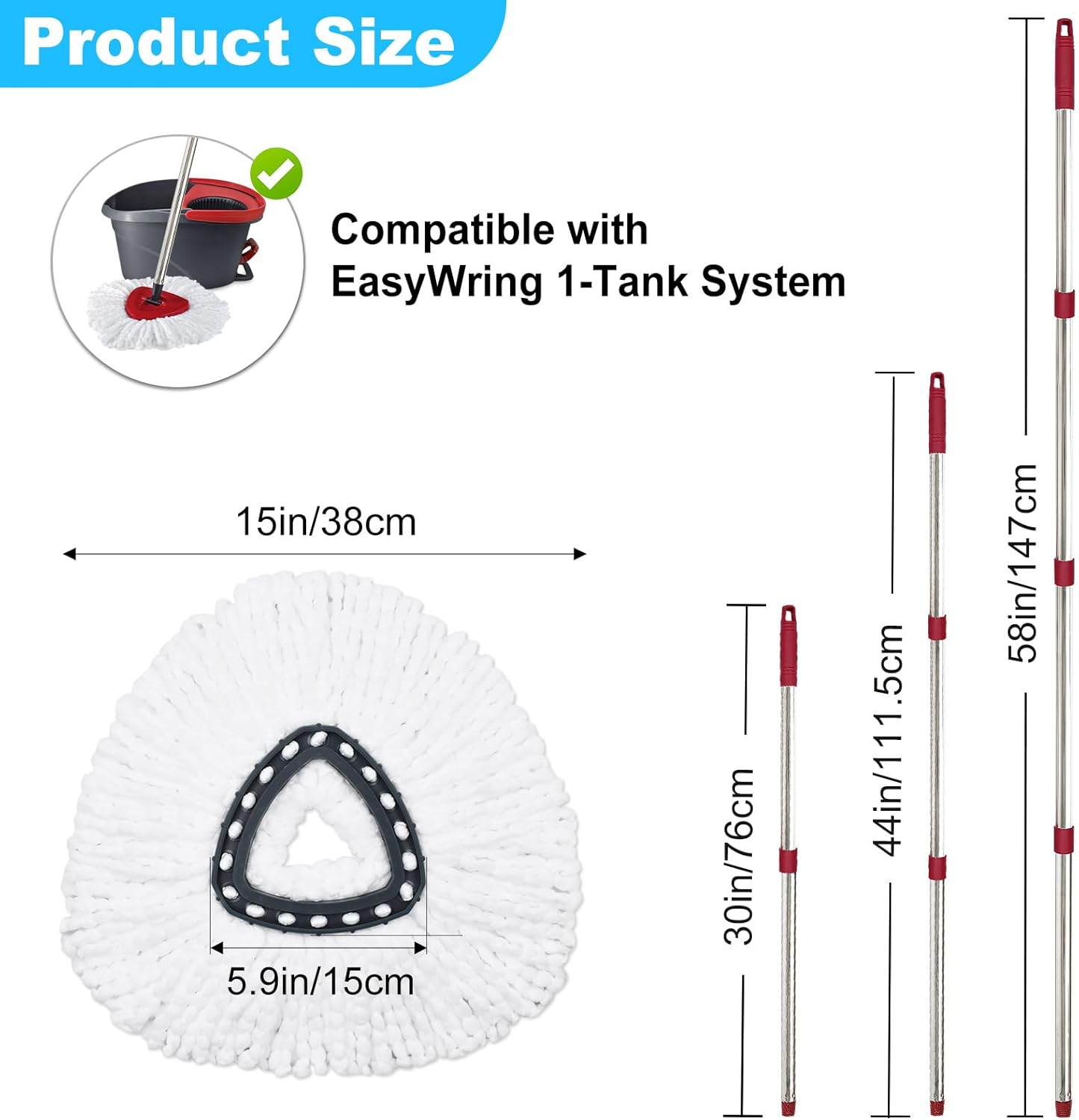 - Compatibility: Mop Replace Head Only Compatible with O Cedar Easywring 1 Tank System Contains 3 Pack Mop Heads Replacement and 4-Section Stainless Steel Mop Handle for Ocedar 1 Tank Spin Mop.