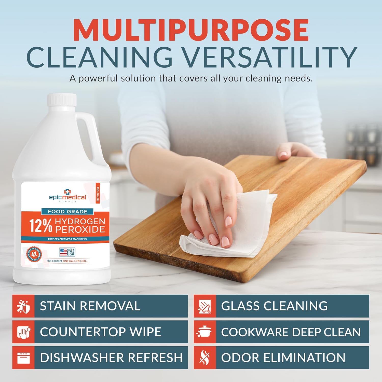 12% Food Grade Hydrogen Peroxide – Ultra-Concentrated H2O2 Peroxide Cleaner – 1 Gallon Bottle – Bleach Alternative for Household Cleaning, Laundry, Glass & More – Made in USA (4)