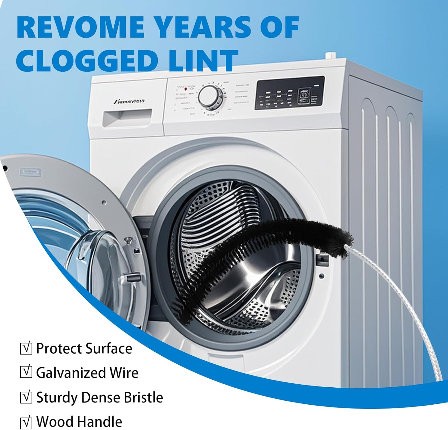 - 【 Heavy-Duty Construction】Sturdy wooden handle controls this long handle dryer brushes. Reinforced core doubles as refrigerator coil cleaning brush and lint dryer brush for multi-use home maintenance.